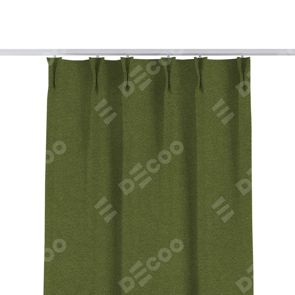 Комплект прямых штор, от производителя «Cortin», пошиты из ткани лён блэкаут оливковый, артикул ткани 69516. С изнаночной стороны в верхней части штор пристрачивается шторная лента с декоративными складками «Кустик». Для создания элегантных складок прямые шторы шьются по стандарту с коэффициентом 1:2 (на 100 см. ширины проёма 200 см. ширины ткани).