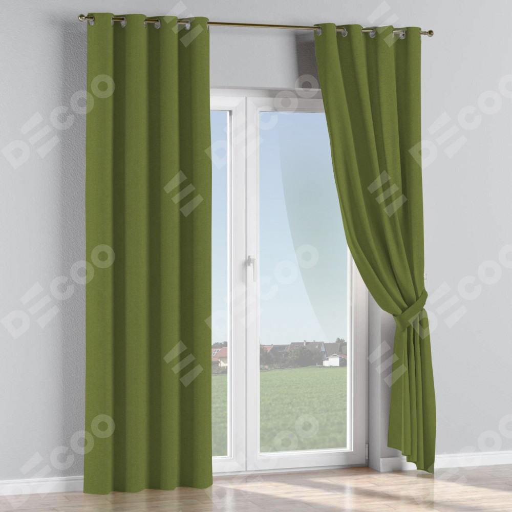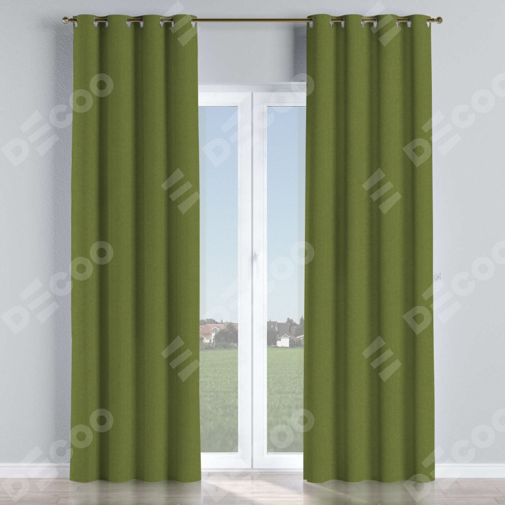 Комплект прямых штор, от производителя «Cortin», пошиты из ткани лён блэкаут оливковый, артикул ткани 69516. Данная модель пошита на люверсах, комплектуется на выбор круглым карнизом и подходит для монтажа на стену или потолок. Прямые шторы на люверсах шьются по стандарту с коэффициентом 1/2 (на 100 см. ширины проёма 200 см. ширины ткани), отличительным преимуществом данной модели является простой способ монтажа. Достаточно повесить ее на трубу и штора готова!