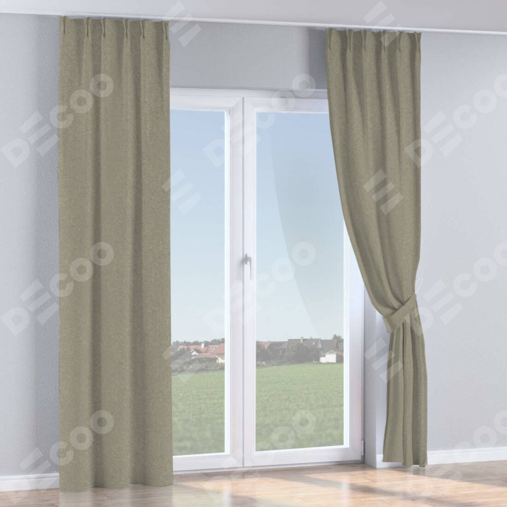 Комплект прямых штор, от производителя «Cortin», пошиты из ткани лён блэкаут светло-бежевый, артикул ткани 69445. С изнаночной стороны в верхней части штор пристрачивается шторная лента с декоративными складками «Кустик». Для создания элегантных складок прямые шторы шьются по стандарту с коэффициентом 1:2 (на 100 см. ширины проёма 200 см. ширины ткани).