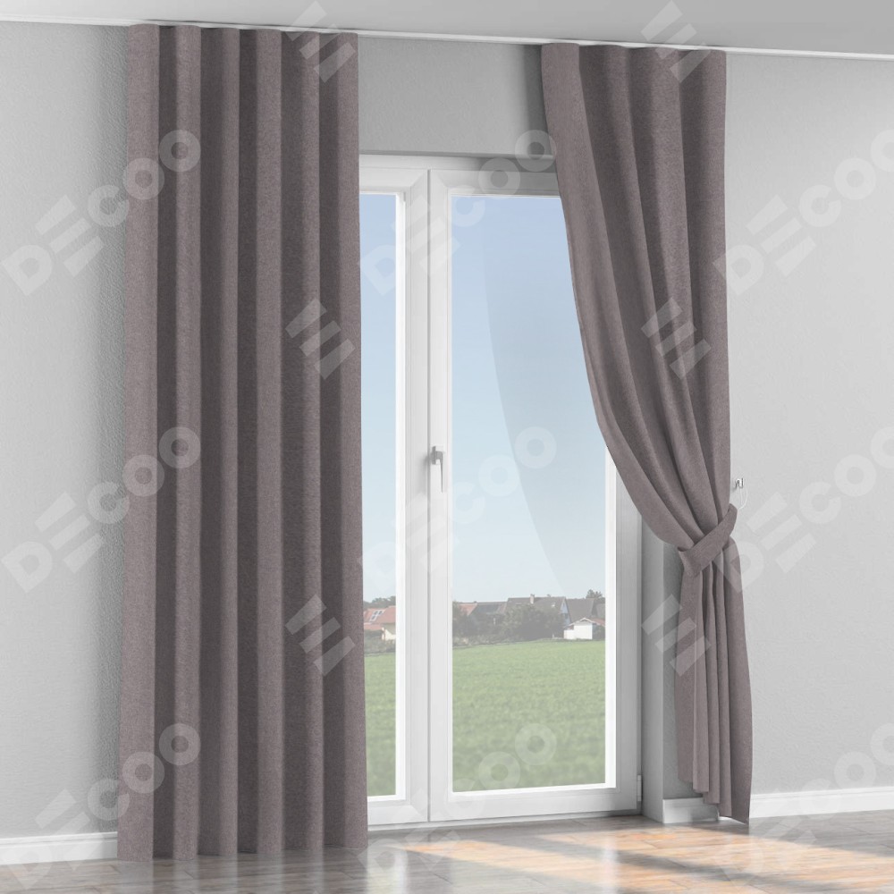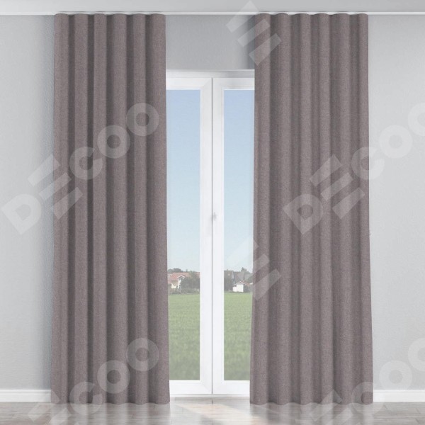 Комплект прямых штор, от производителя «Cortin», пошиты из ткани лён блэкаут сиреневый, артикул ткани 69576. С изнаночной стороны в верхней части штор пристрачивается шторная лента с декоративными складками «Волна». Для создания элегантных складок прямые шторы шьются по стандарту с коэффициентом 1:2 (на 100 см. ширины проёма 200 см. ширины ткани).