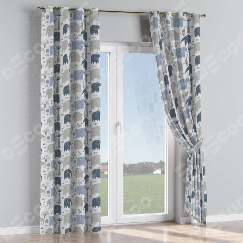 Комплект прямых штор, от производителя «Cortin», пошиты из ткани блэкаут с нанесением сублимационной печати «Серые слоники». Данная модель пошита на люверсах, комплектуется на выбор круглым карнизом и подходит для монтажа на стену или потолок. Прямые шторы на люверсах шьются по стандарту с коэффициентом 1/2 (на 100 см. ширины проёма 200 см. ширины ткани), отличительным преимуществом данной модели является простой способ монтажа. Достаточно повесить ее на трубу и штора готова!