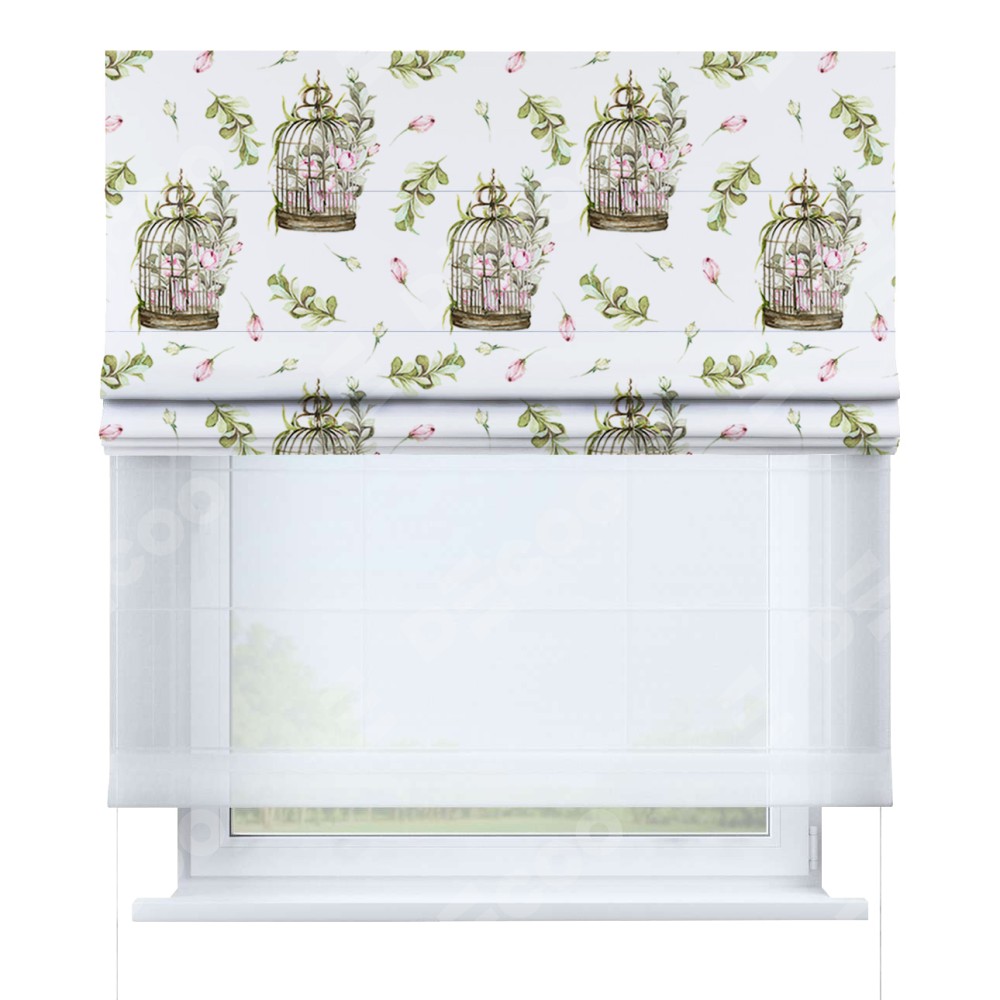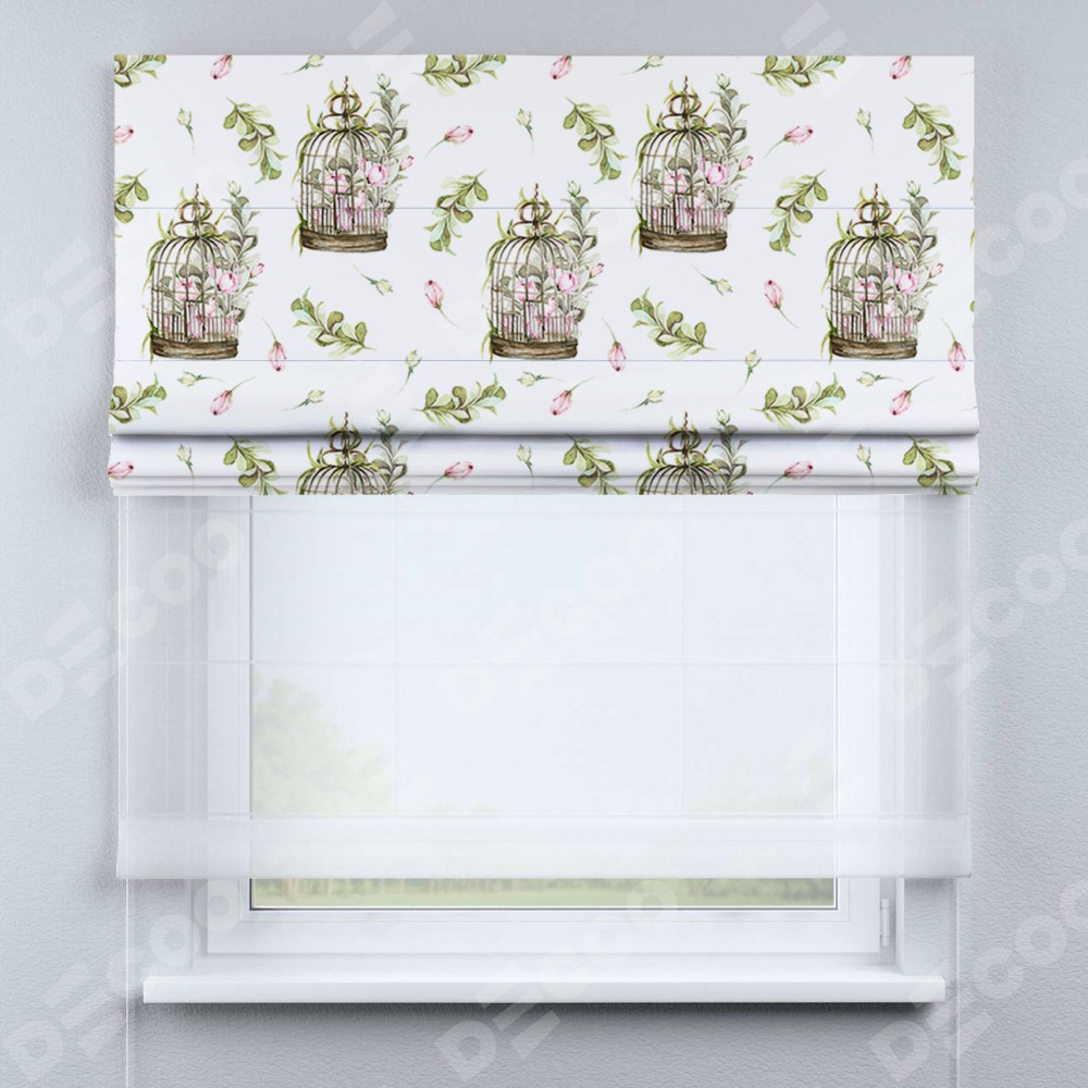 Римская штора день-ночь производителя «Cortin», используется для проёма, пошита из двух полотен, с лицевой блэкаут с нанесением сублимационной печати «Летний прованс», вторая ткань тюль (по стандарту комплектуется тюль белого цвета артикул V-01). Имеет универсальный механизм и подходит для монтажа: на потолок, на стену и в нишу.