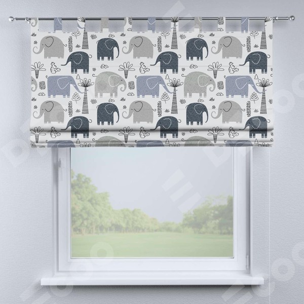 Римская штора производителя «Cortin», используется для проёма, пошита из ткани блэкаут с нанесением сублимационной печати «Серые слоники». Данная модель пошита на петлях, комплектуется на выбор круглым карнизом и подходит для монтажа на стену. Римская штора на петлях имеет простую систему регулировки высоты, отличительным преимуществом данной модели является простой способ монтажа. Достаточно повесить ее на трубу и штора готова!
