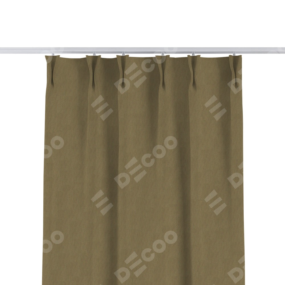 Комплект прямых штор, от производителя «Cortin», пошиты из ткани блэкаут однотонный бежево-золотой, артикул ткани 12095−2. С изнаночной стороны в верхней части штор пристрачивается шторная лента с декоративными складками «Кустик». Для создания элегантных складок прямые шторы шьются по стандарту с коэффициентом 1:2 (на 100 см. ширины проёма 200 см. ширины ткани).
