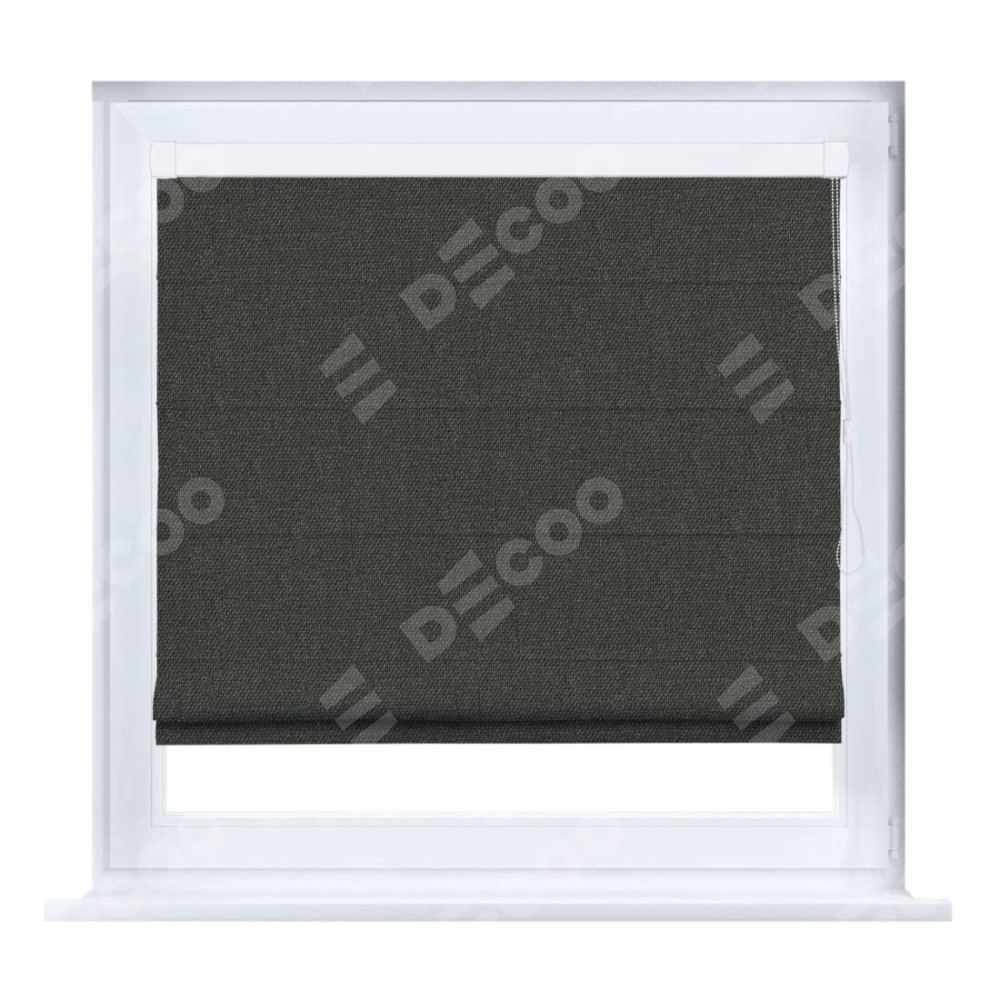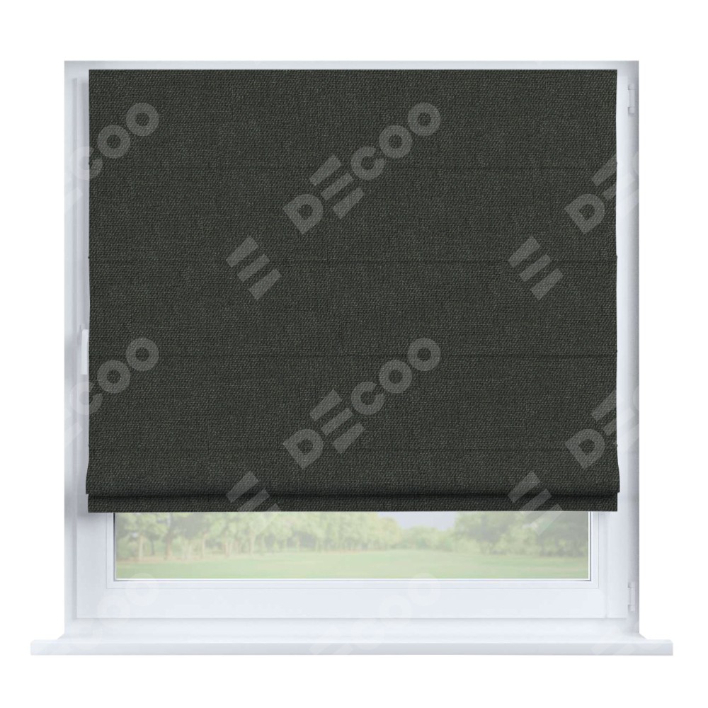 Римская штора производителя «Cortin», устанавливается на створку окна, пошита из ткани лён димаут графитово-серый, артикул 35129. Штора шьётся по индивидуальным размерам, для данного типа римской шторы возможная ширина от 35 до 150 см., высота до 250 см.
