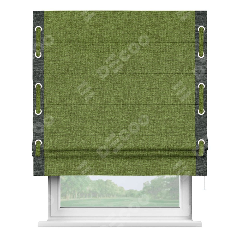 Римская штора «Кортин» с кантом Стрим Дуо (люверсы с пояском), для проема, ткань рогожка димаут, салатовый