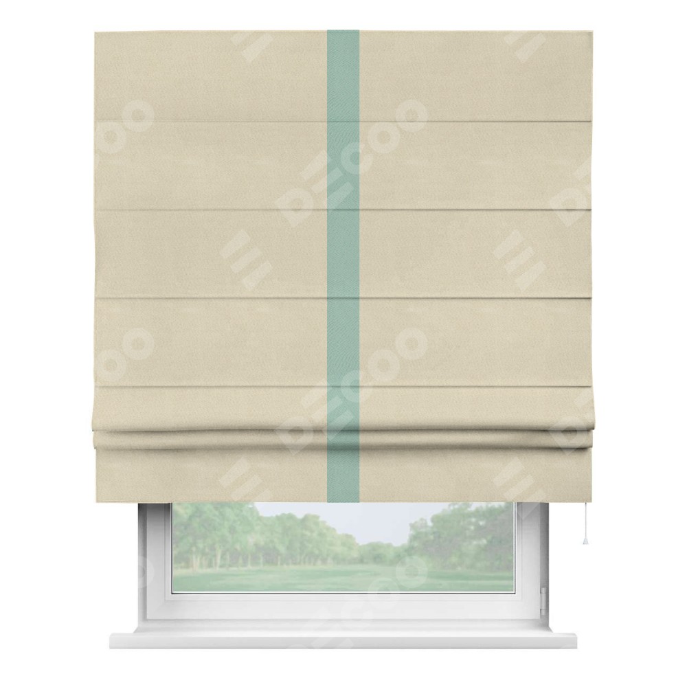 Римская штора производителя «Cortin», используется для проёма, пошита из ткани блэкаут однотонный бежевый, артикул ткани 13125. Отделка шторы кантом «Хайвей», ткань для канта используется из блэкаута однотонного разной расцветки на выбор. Имеет универсальный механизм и подходит для монтажа: на потолок, на стену и в нишу.