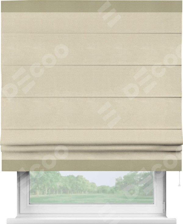 Римская штора «Кортин» с кантом Горизонт, для проема, ткань блэкаут однотонный цвет бежевый
