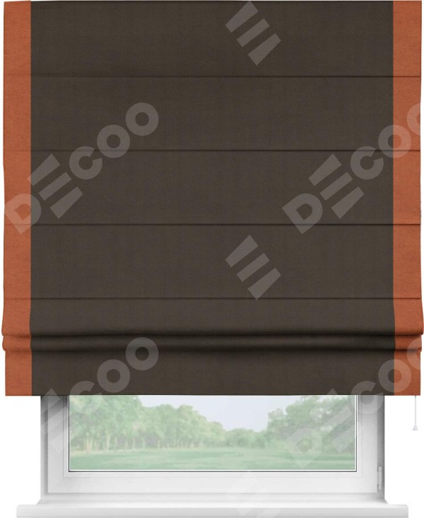 Римская штора «Кортин» с кантом Стрим Дуо, для проема, ткань вельвет тёмно-коричневый
