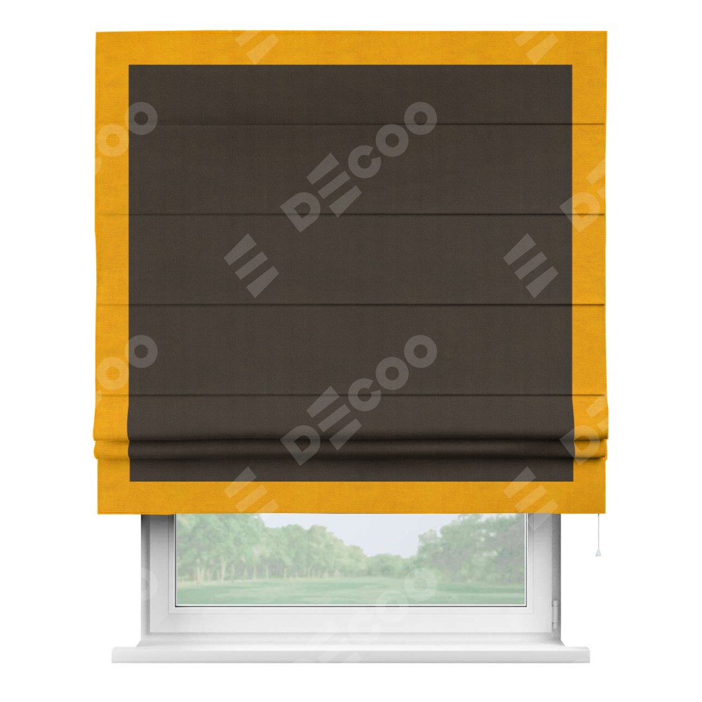 Римская штора «Кортин» с кантом Чесс, для проема, ткань вельвет тёмно-коричневый