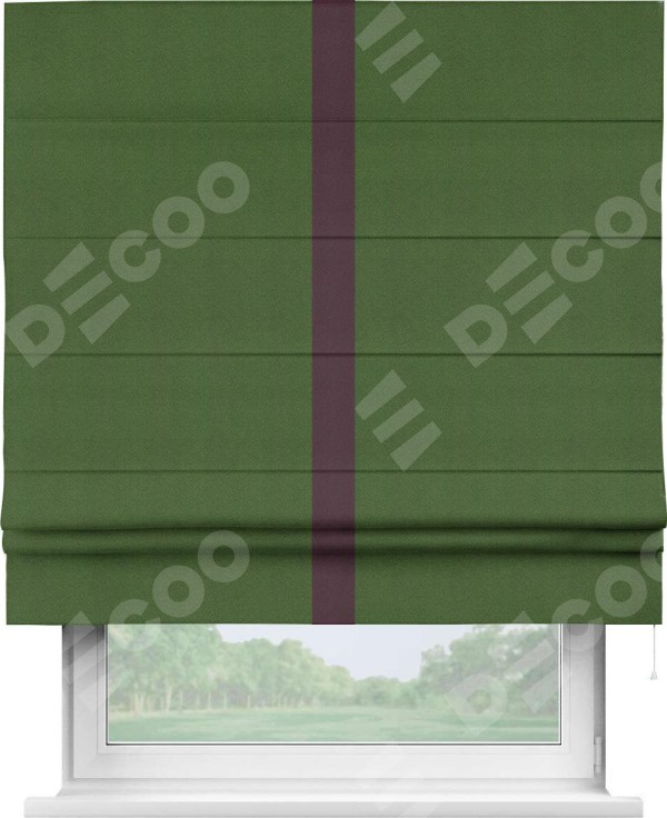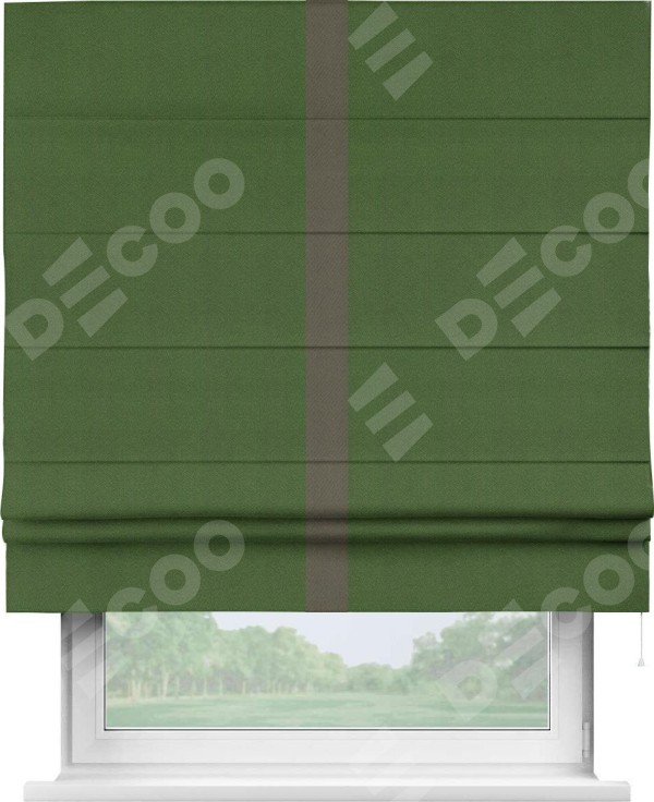 Римская штора «Кортин» с кантом Хайвэй, для проема, ткань блэкаут однотонный зелёный перламутр