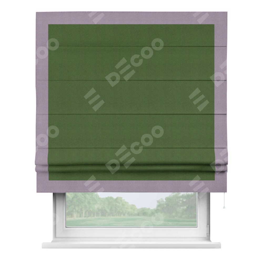 Римская штора производителя «Cortin», используется для проёма, пошита из ткани блэкаут однотонный зелёный перламутр, артикул ткани 81859−2. Отделка шторы кантом «Чесс», ткань для канта используется из блэкаута однотонного разной расцветки на выбор. Имеет универсальный механизм и подходит для монтажа: на потолок, на стену и в нишу.