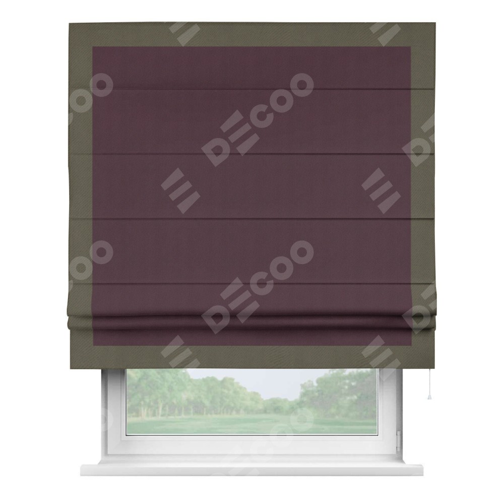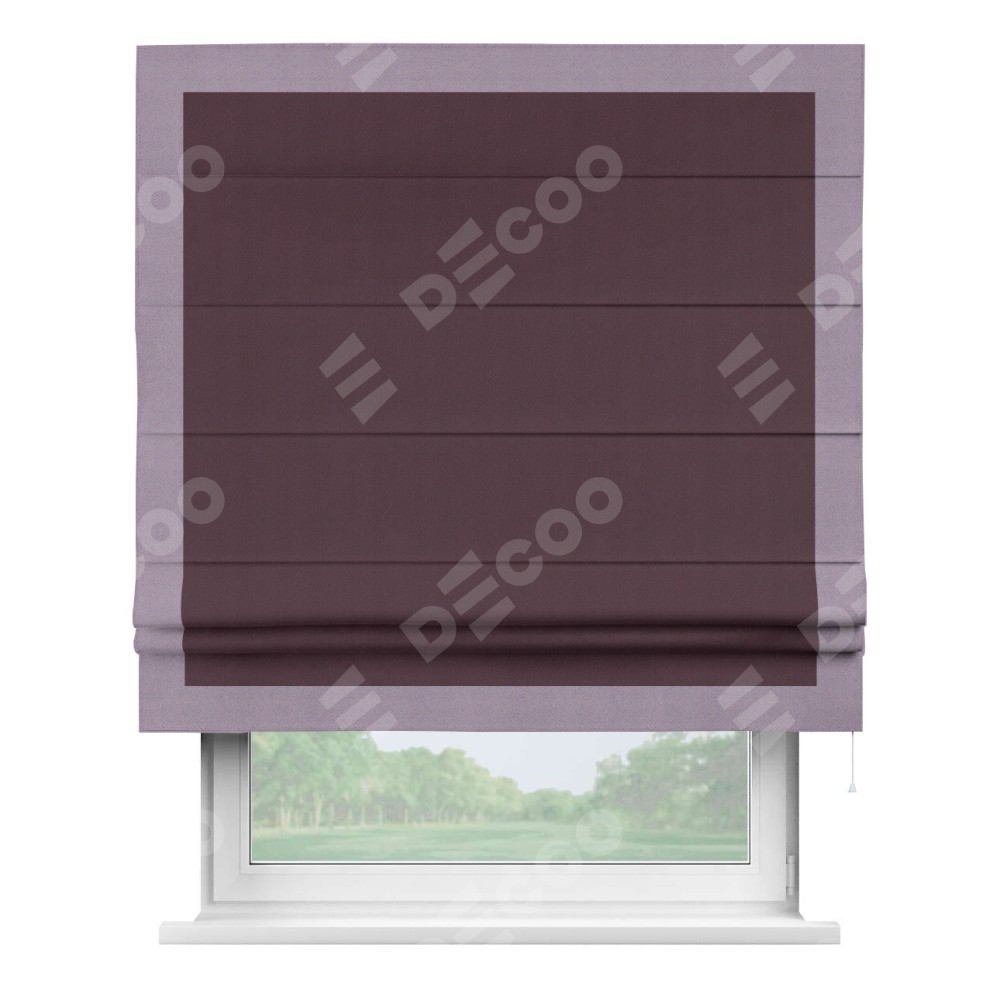 Римская штора «Кортин» с кантом Чесс, для проема, ткань блэкаут однотонный цвет сиреневый