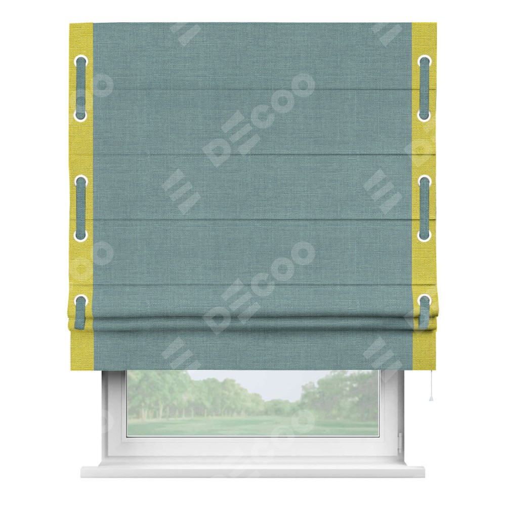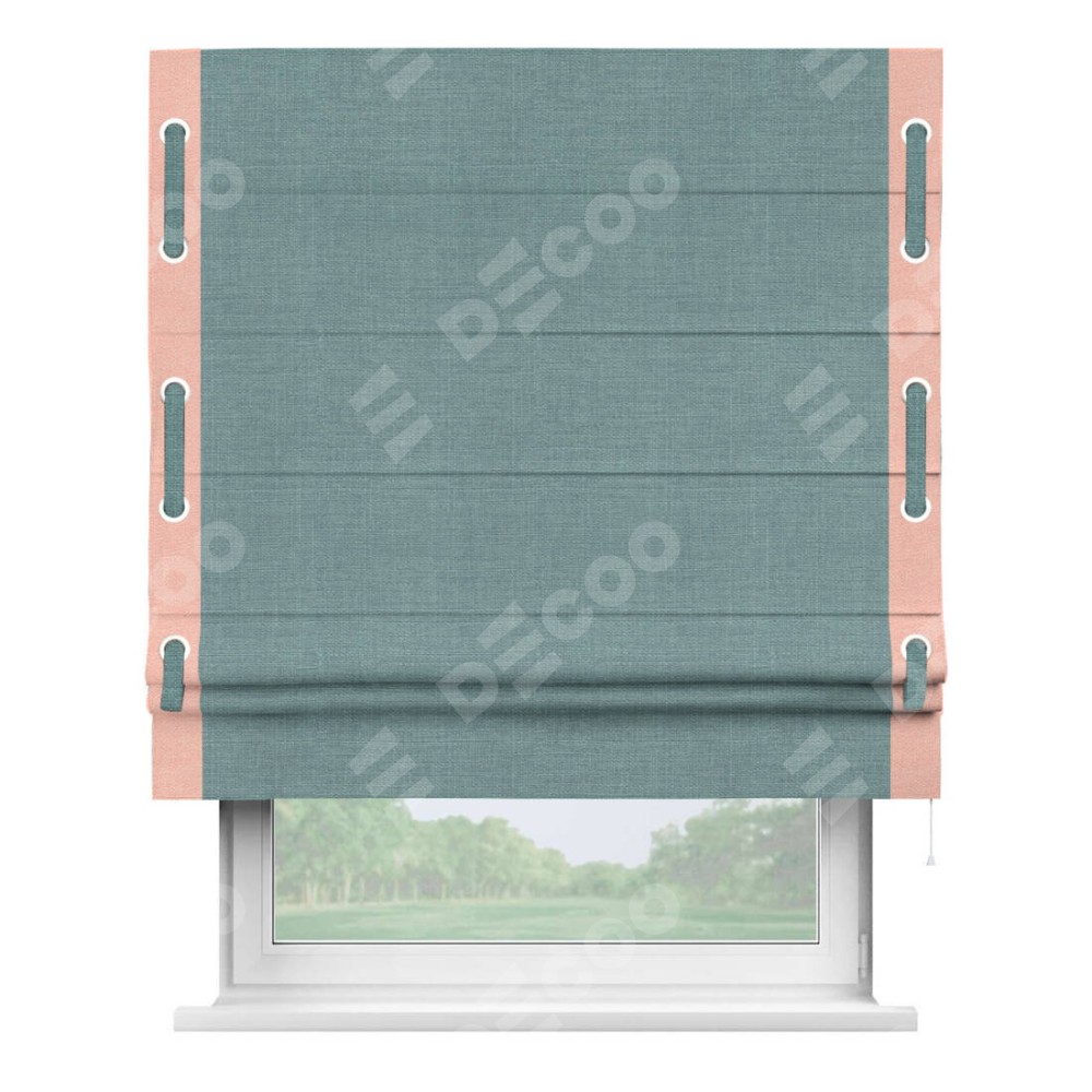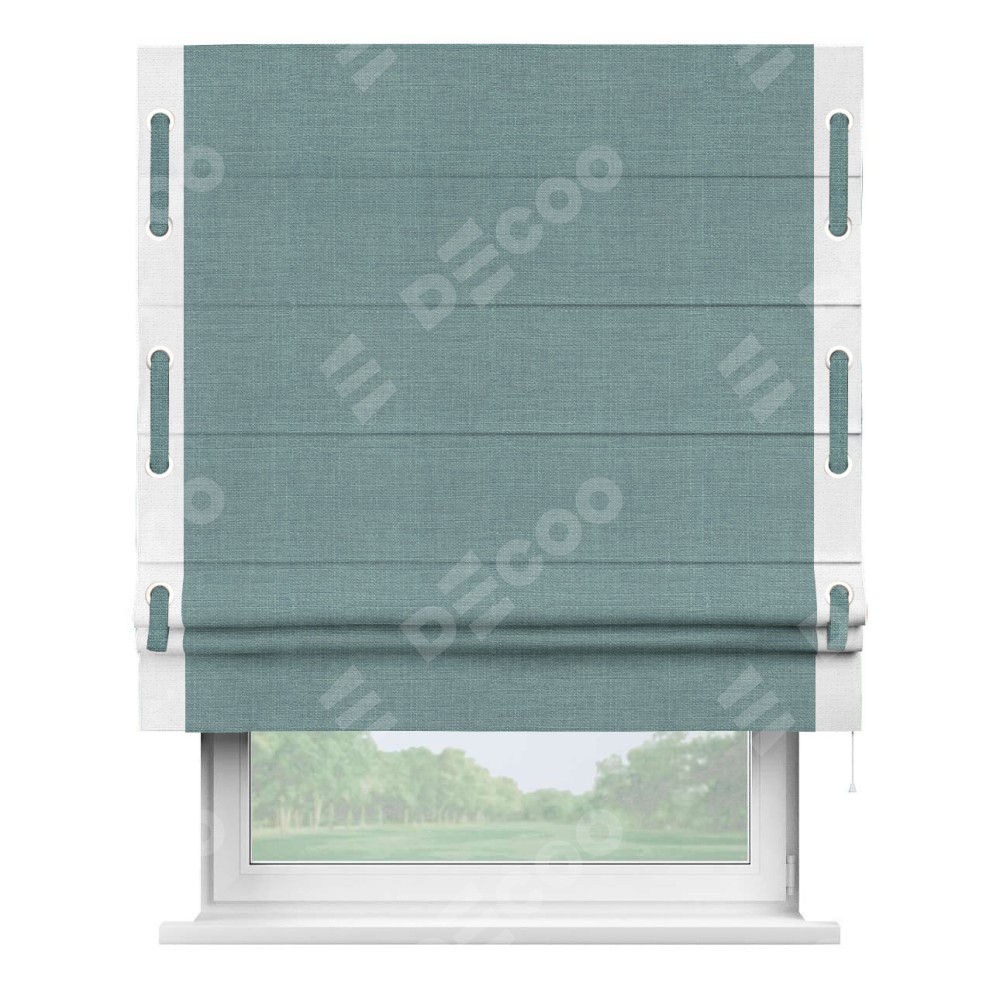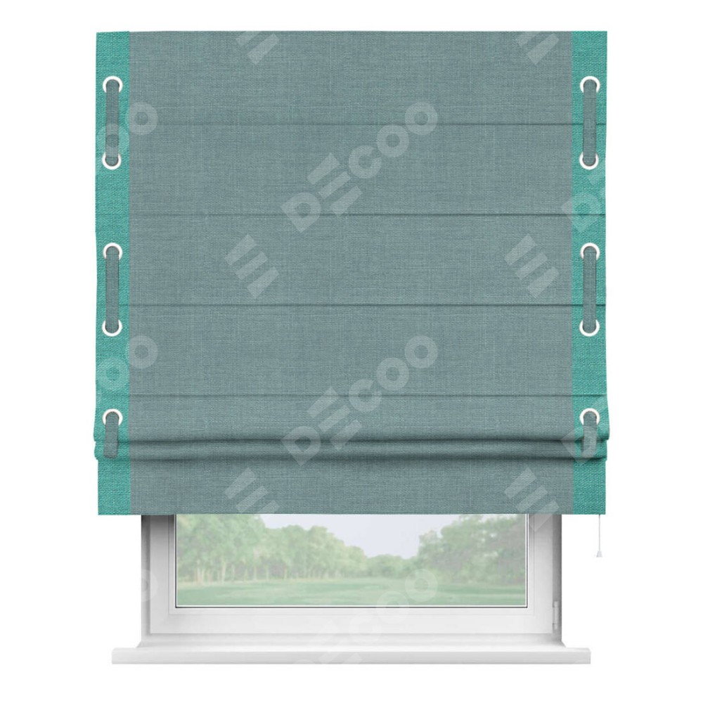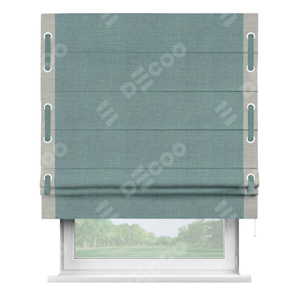 Римская штора «Кортин» с кантом Стрим Дуо, для проема, ткань лён, цвет голубой