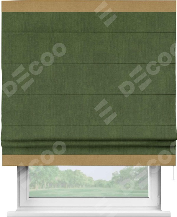 Римская штора «Кортин» с кантом Горизонт, для проема, ткань вельвет тёмно-салатовый