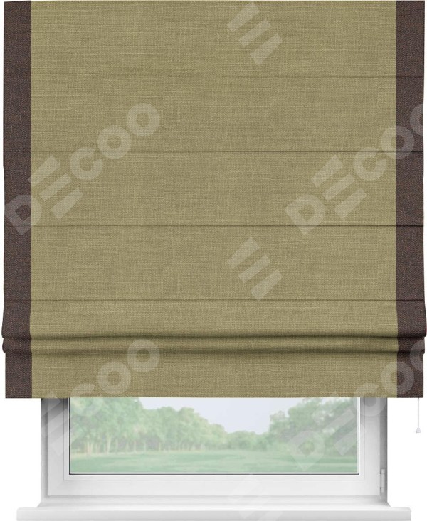 Римская штора «Кортин» с кантом Стрим Дуо, лён коричневый