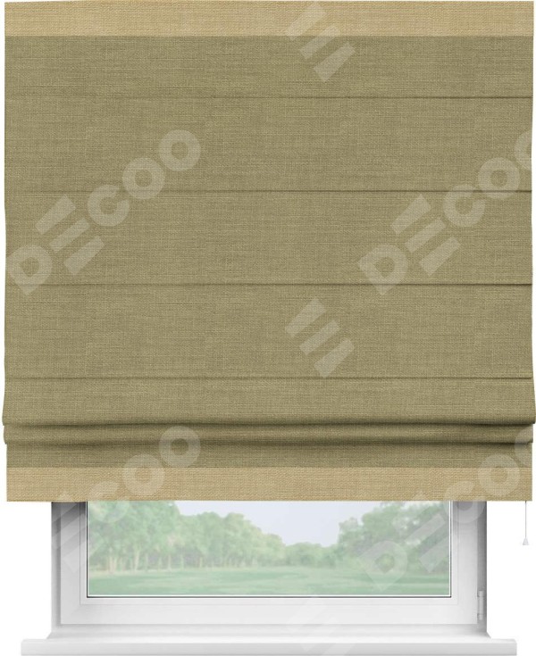 Римская штора «Кортин» с кантом Горизонт, для проема, лён, цвет коричневый