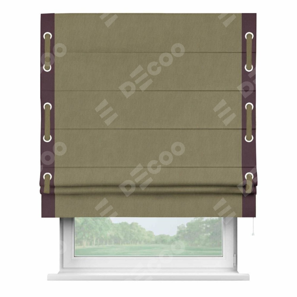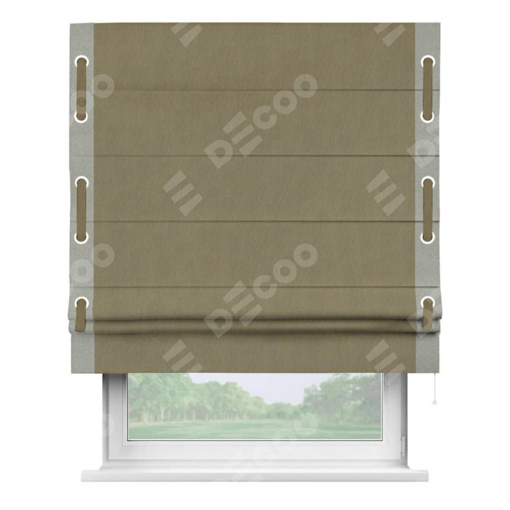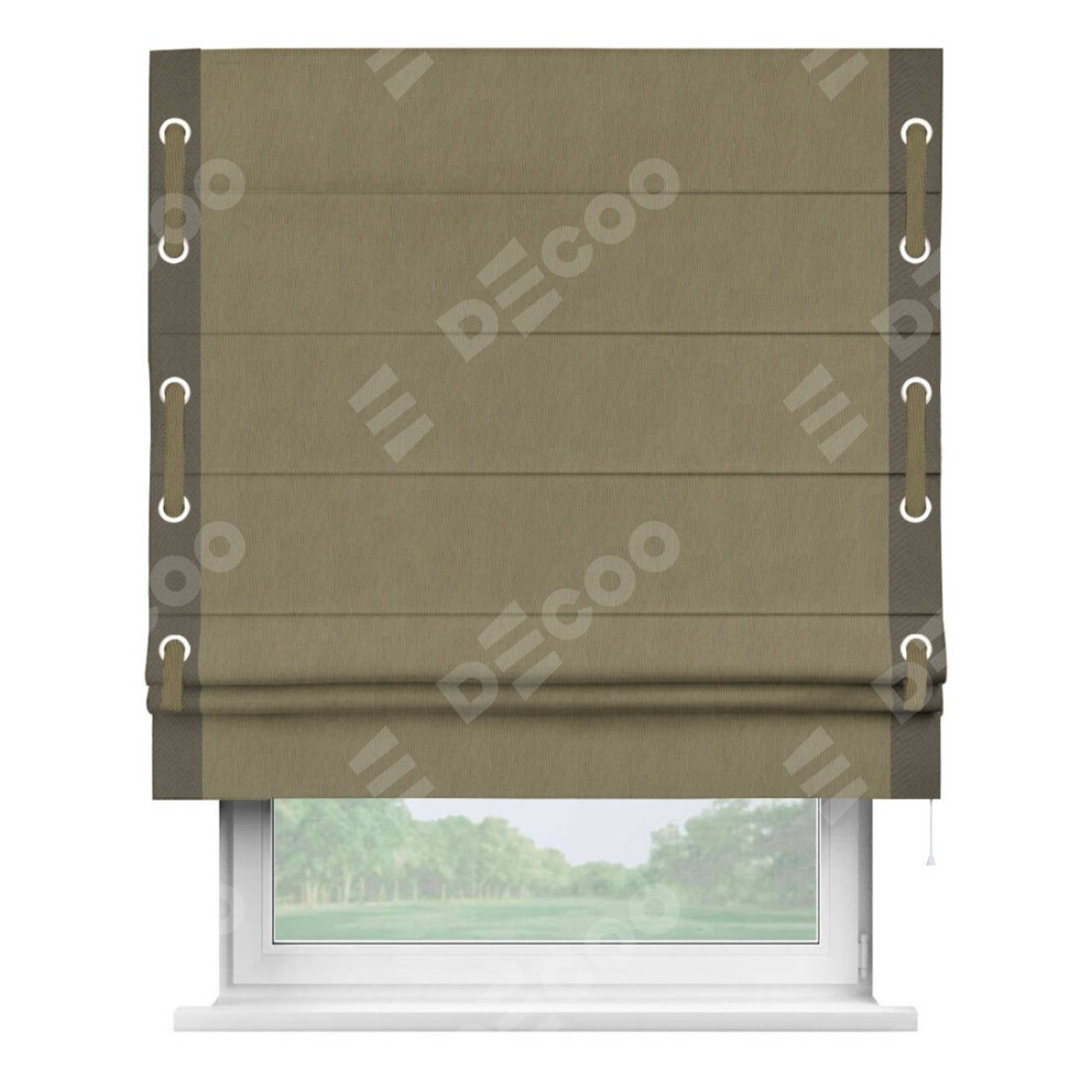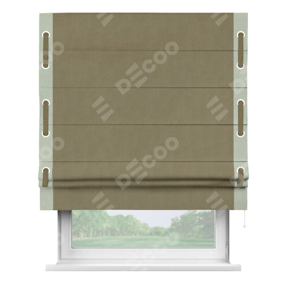 Римская штора «Кортин» с кантом Стрим Дуо (люверсы с пояском) отлично подойдёт для интерьера: в кухню, в гостиную и на балкон.
