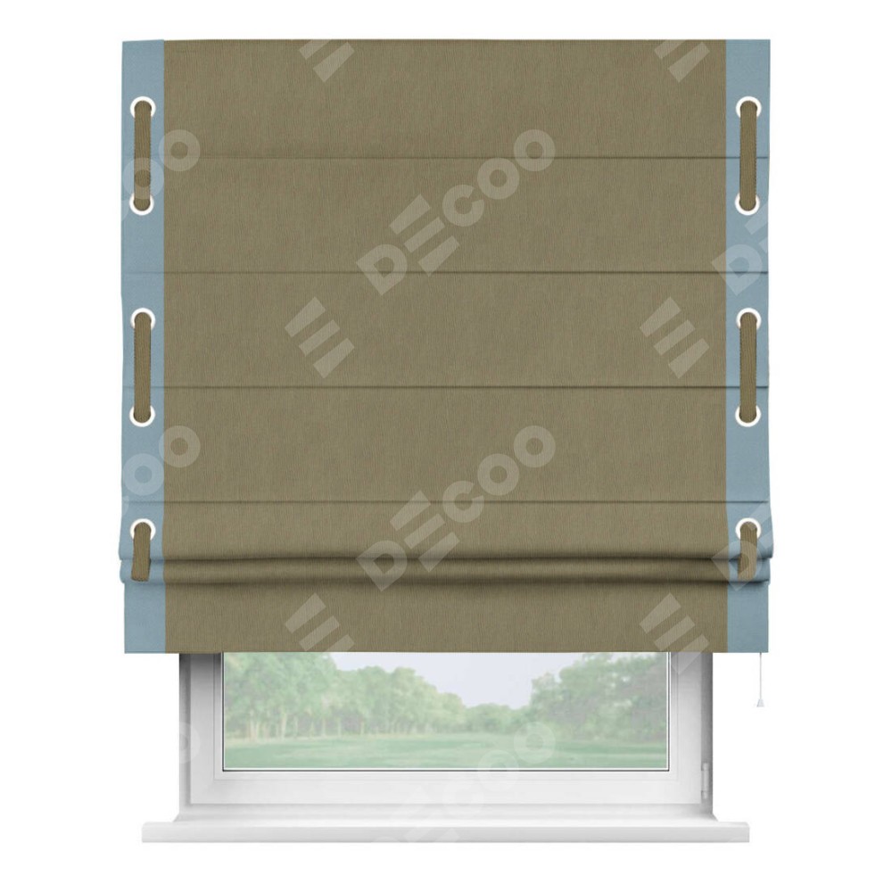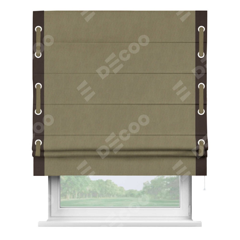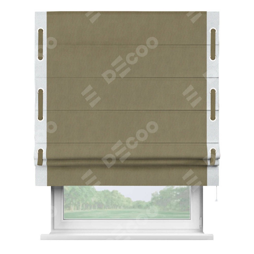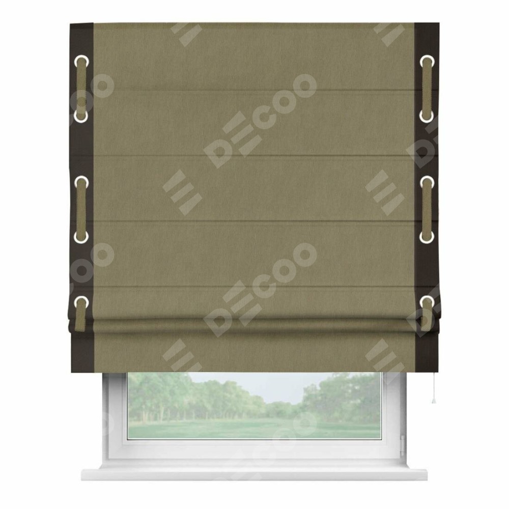 Римская штора «Кортин» с кантом Стрим Дуо (люверсы с пояском) отлично подойдёт для интерьера: в кухню, в гостиную и на балкон.