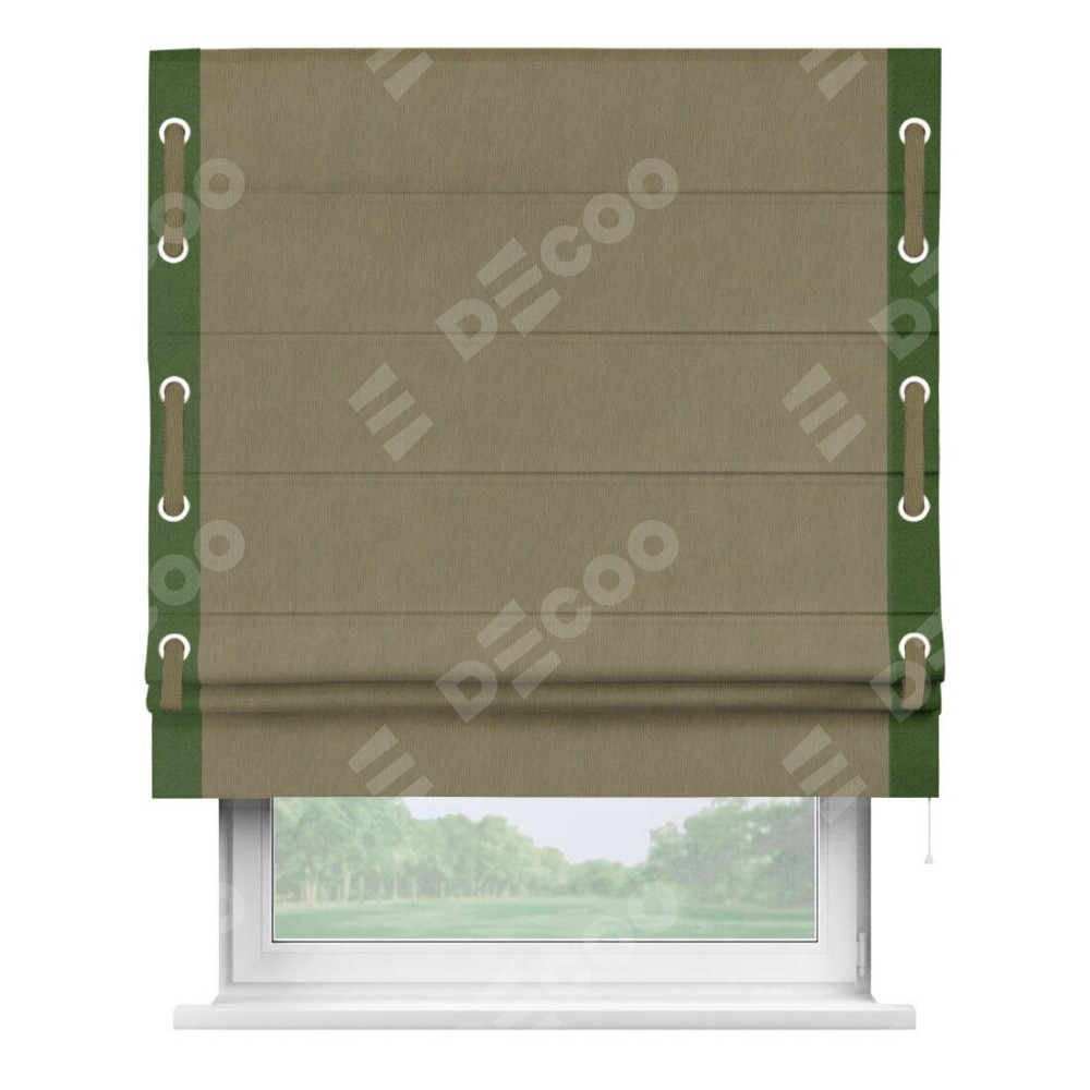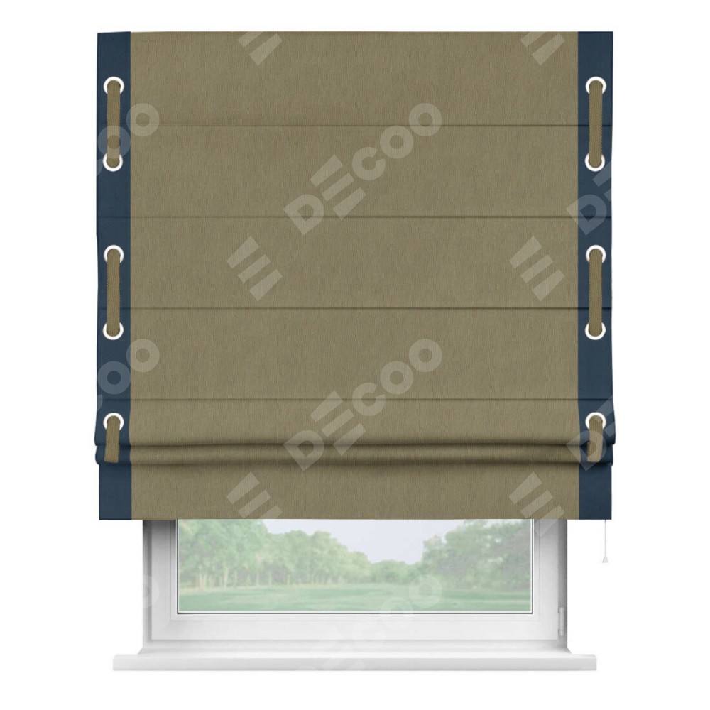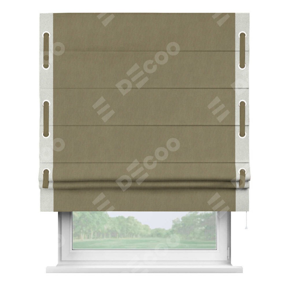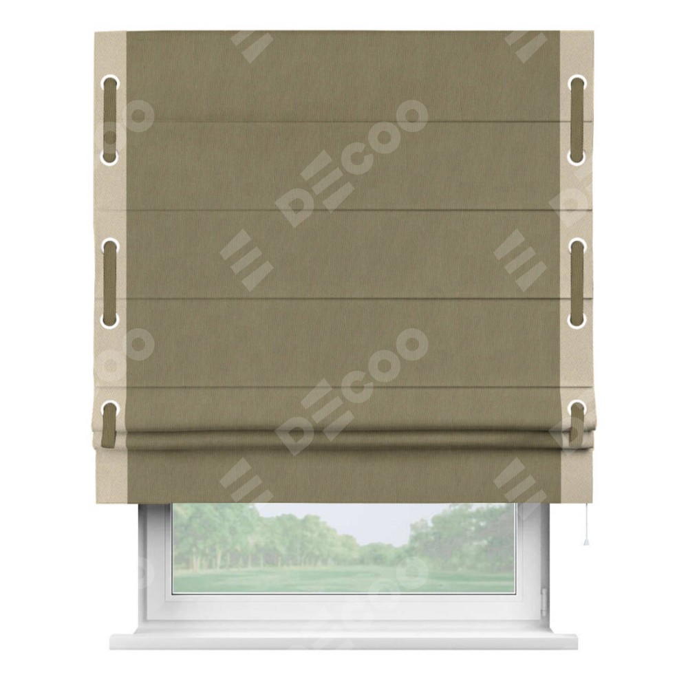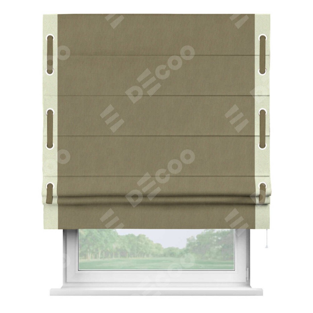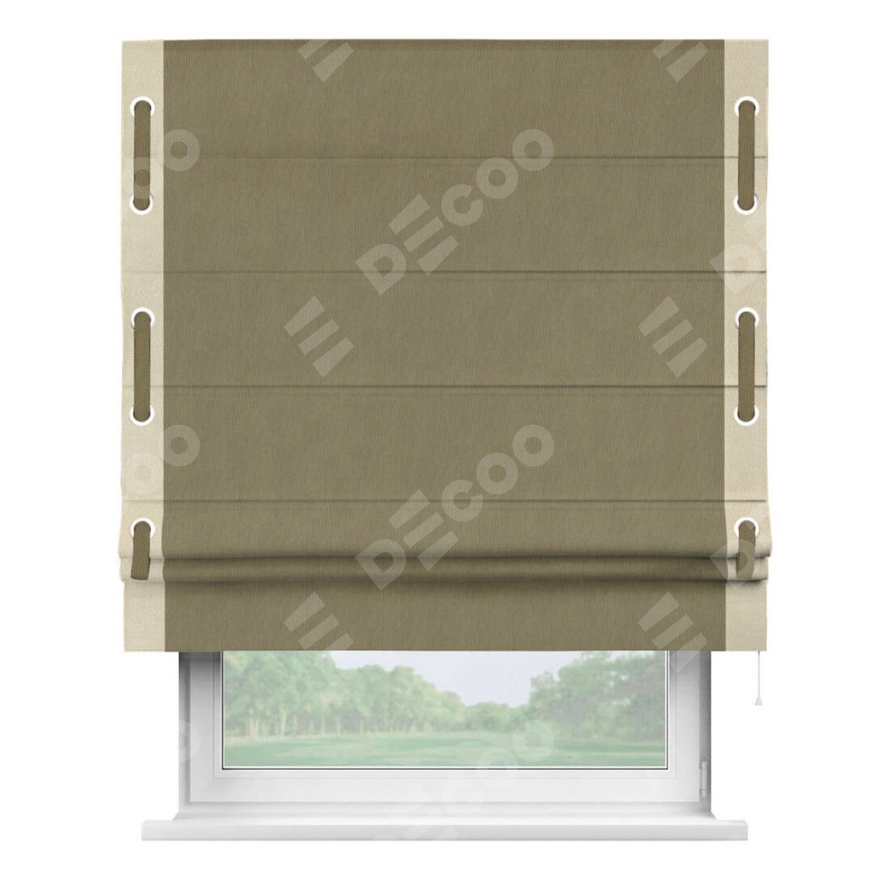 Римская штора «Кортин» с кантом Стрим Дуо (люверсы с пояском), для проема, ткань блэкаут однотонный бежево-золотой