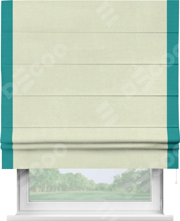 Римская штора «Кортин» с кантом Стрим Дуо, для проема, ткань блэкаут однотонный сливочный