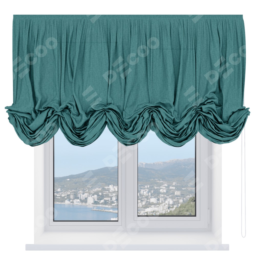 Австрийская штора «Кортин», ткань лён кашемир бирюзовый