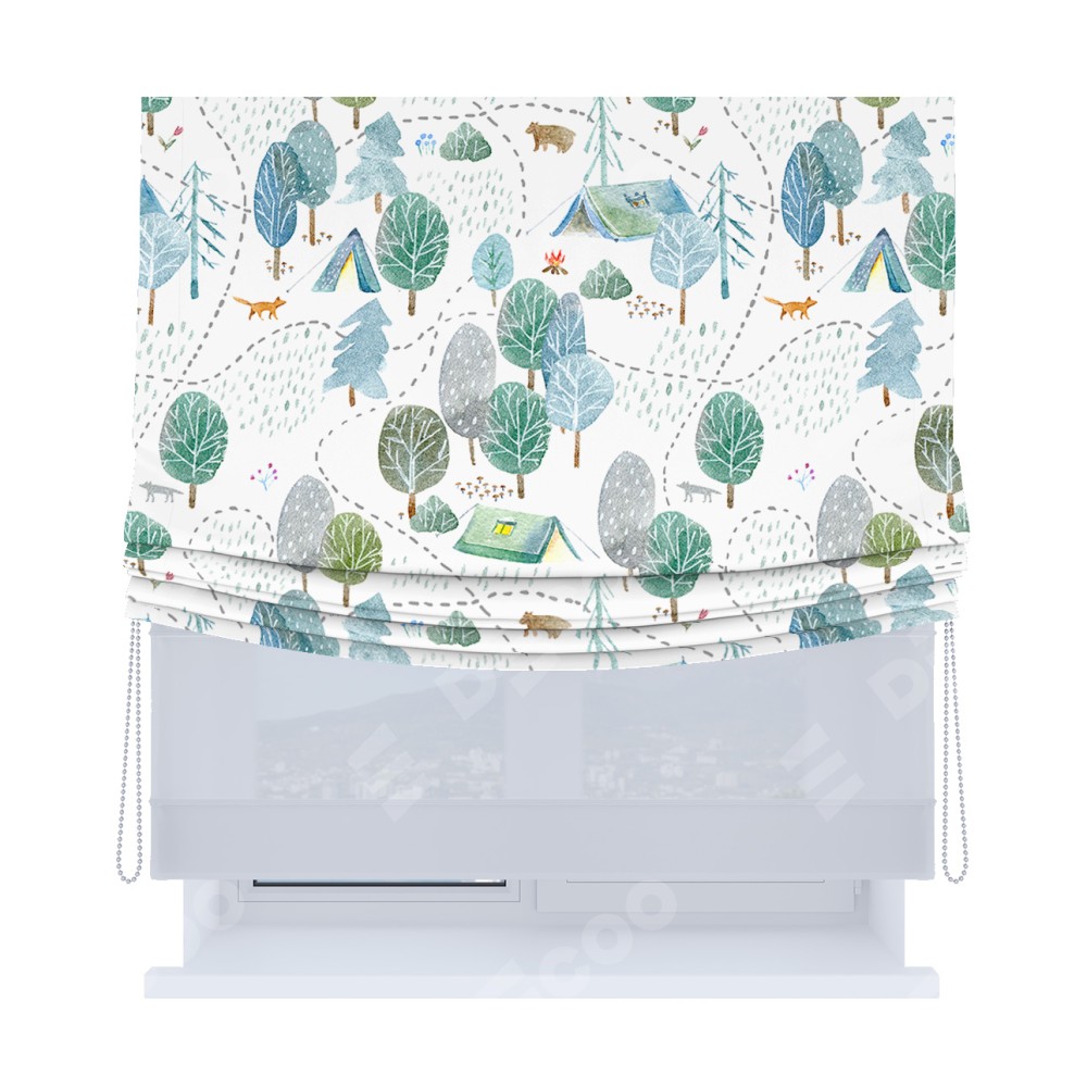 Римская штора «Кортин», день-ночь с мягкими складками, «Лесистая местность»