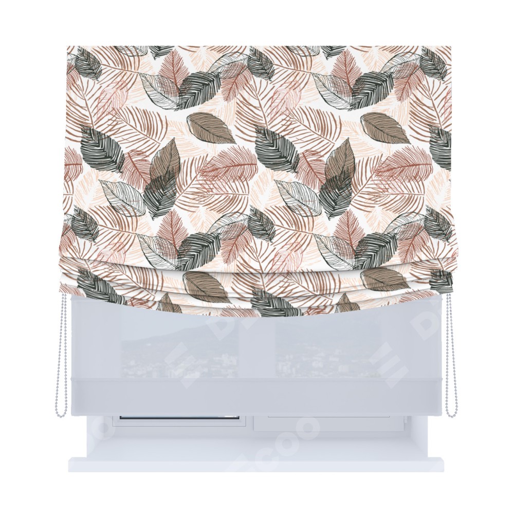 Основная ткань римской шторы не имеет горизонтальных вставок и нижнего отвеса. Это позволяет ткани произвольно драпироваться в свободные мягкие складки.