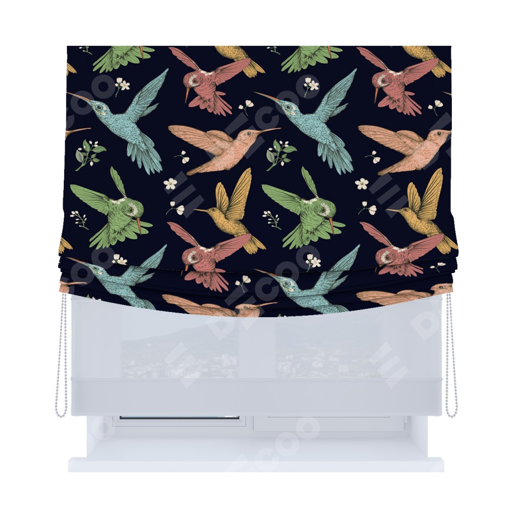 Римская штора «Кортин», день-ночь с мягкими складками, «Птицы и цветы»