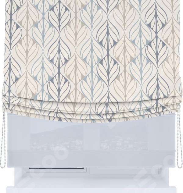 Римская штора день-ночь производителя «Cortin», используется для проёма, пошита из двух полотен, с лицевой блэкаут с нанесением сублимационной печати «Растительный орнамент», вторая ткань тюль (по стандарту комплектуется тюль белого цвета артикул V-01). Имеет универсальный механизм и подходит для монтажа: на потолок, на стену и в нишу. Удобное управление каждой шторой отдельно.