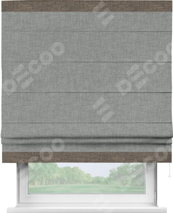Римская штора с кантом Горизонт, для проема, рогожка димаут, тёмно-серый