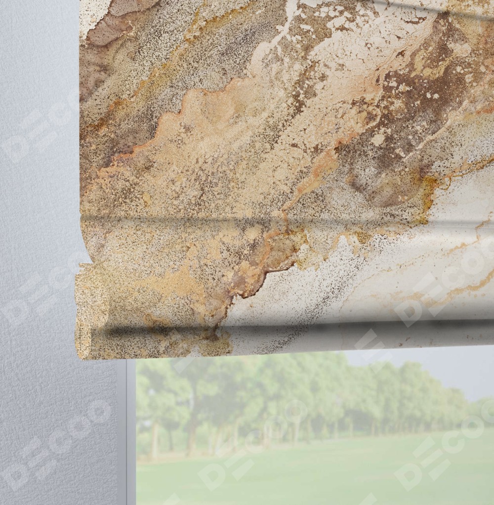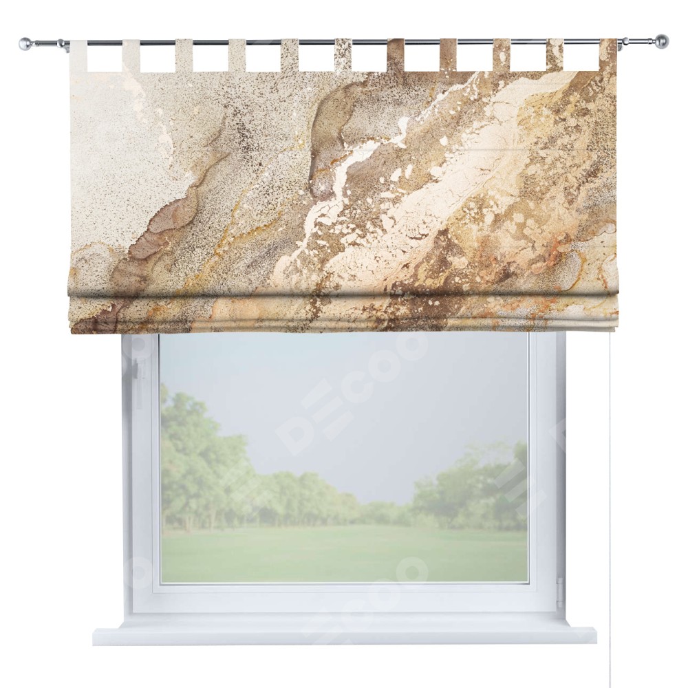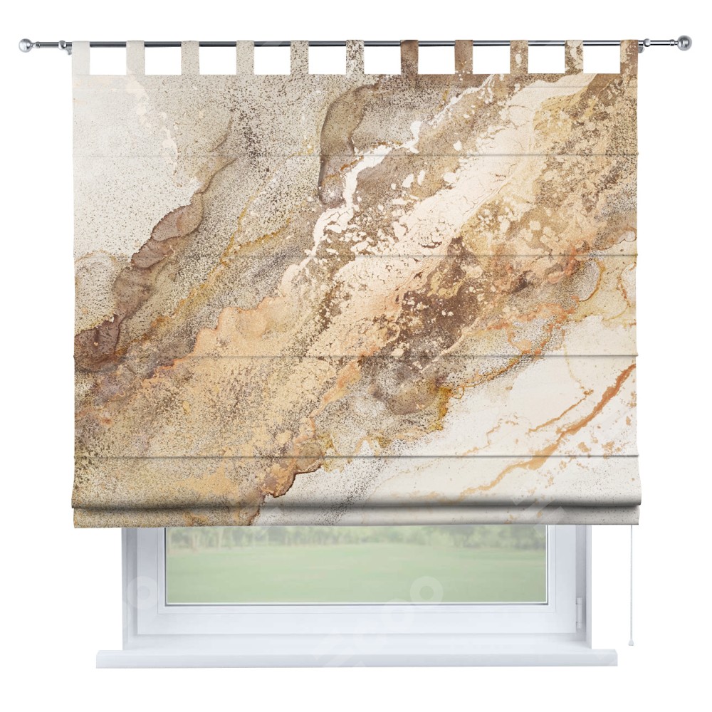Римская штора производителя «Cortin», используется для проёма, пошита из ткани блэкаут с нанесением сублимационной печати «Бежево-золотой мрамор». Данная модель пошита на петлях, комплектуется на выбор круглым карнизом и подходит для монтажа на стену. Римская штора на петлях имеет простую систему регулировки высоты, отличительным преимуществом данной модели является простой способ монтажа. Достаточно повесить ее на трубу и штора готова!