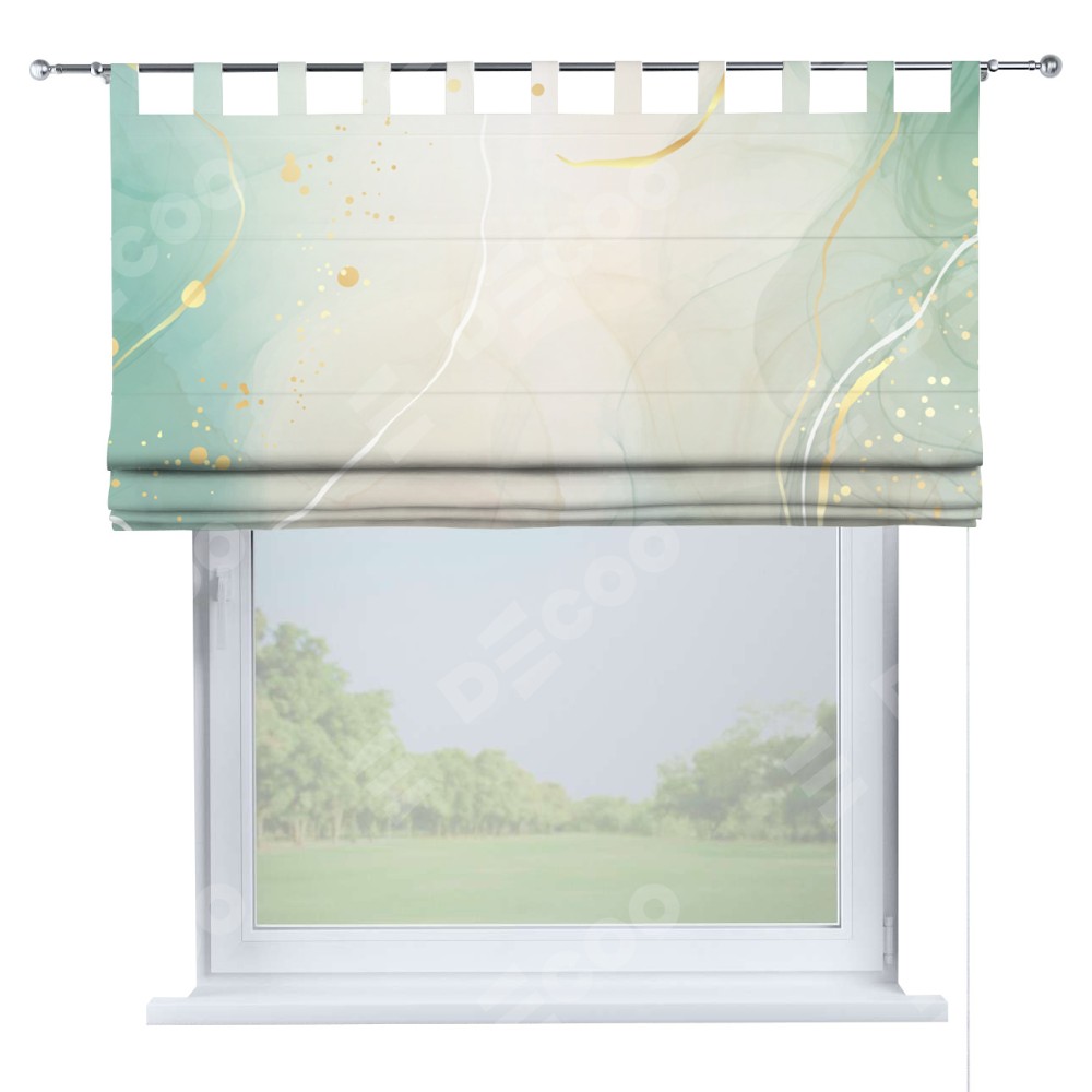 Римская штора производителя «Cortin», используется для проёма, пошита из ткани блэкаут с нанесением сублимационной печати «Изумрудно-серый мрамор». Данная модель пошита на петлях, комплектуется на выбор круглым карнизом и подходит для монтажа на стену. Римская штора на петлях имеет простую систему регулировки высоты, отличительным преимуществом данной модели является простой способ монтажа. Достаточно повесить ее на трубу и штора готова!