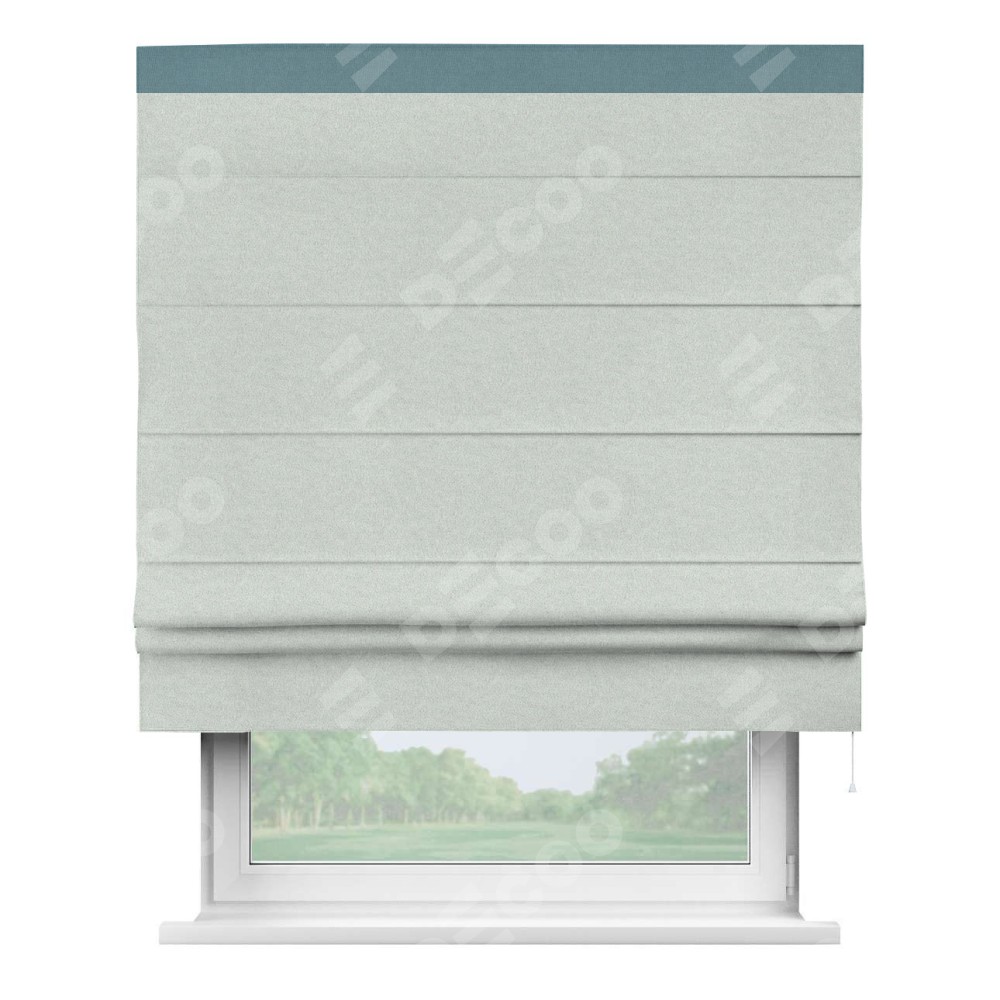 Римская штора производителя «Cortin», используется для проёма, пошита из ткани лён блэкаут белый, артикул 69451. Отделка шторы кантом «Кинг», ткань для канта используется из льна разной расцветки на выбор. Имеет универсальный механизм и подходит для монтажа: на потолок, на стену и в нишу.