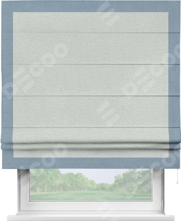 Римская штора «Кортин» с кантом Чесс, для проема, лён блэкаут белый
