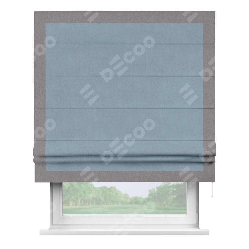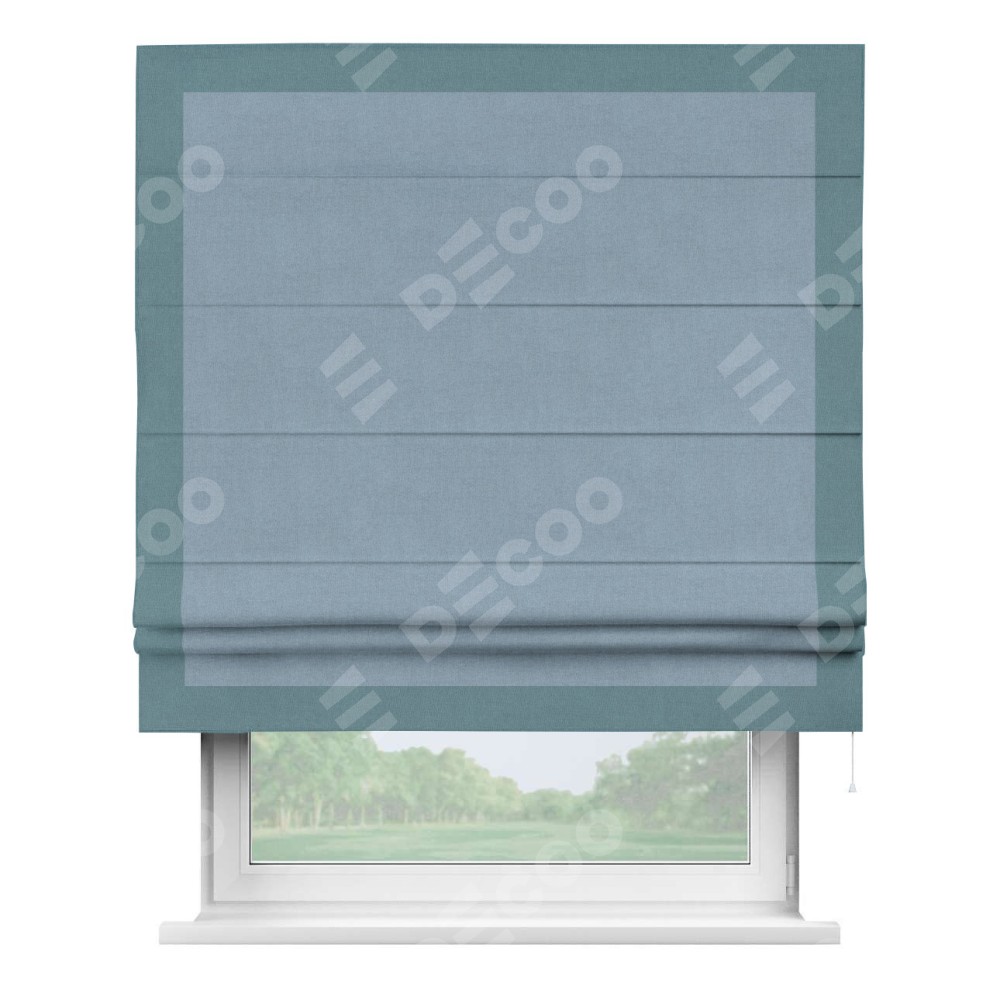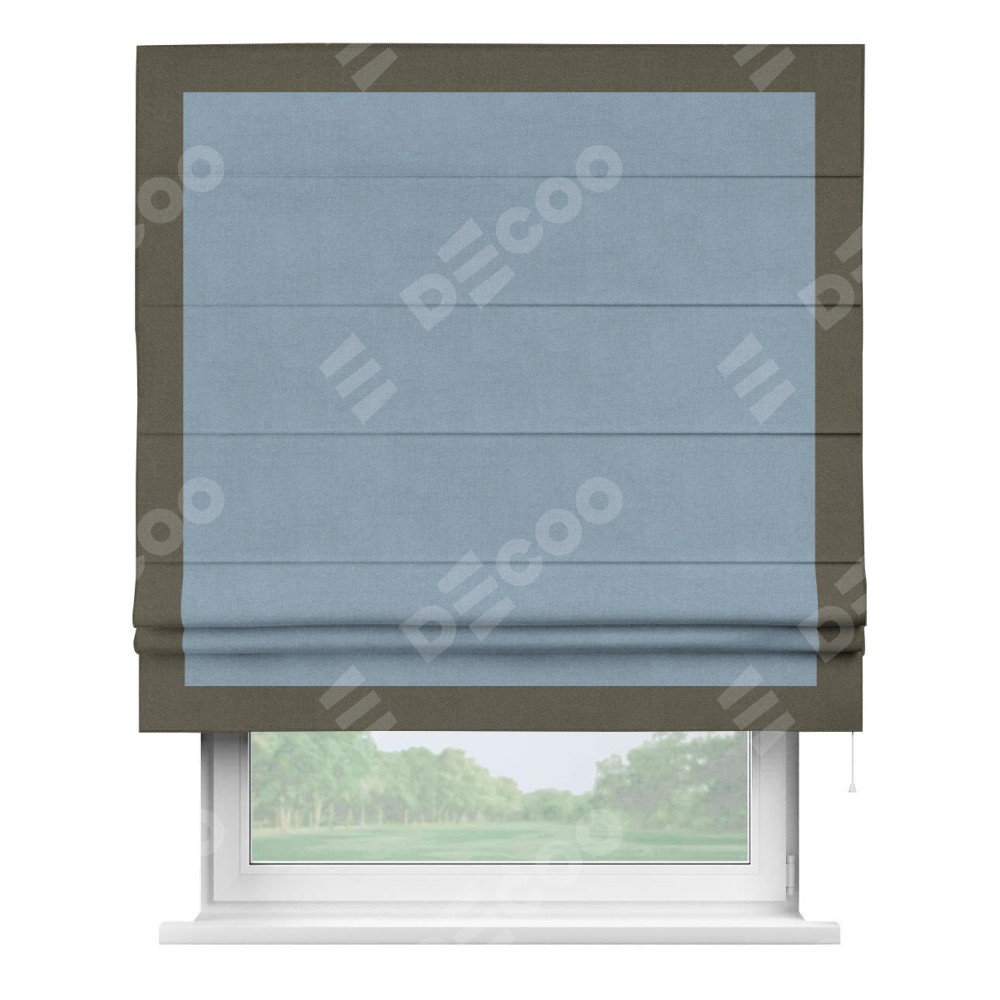 Римская штора «Кортин» с кантом Чесс, для проема, лён блэкаут голубой