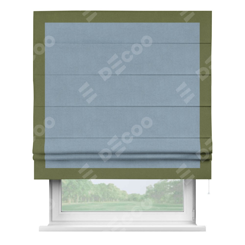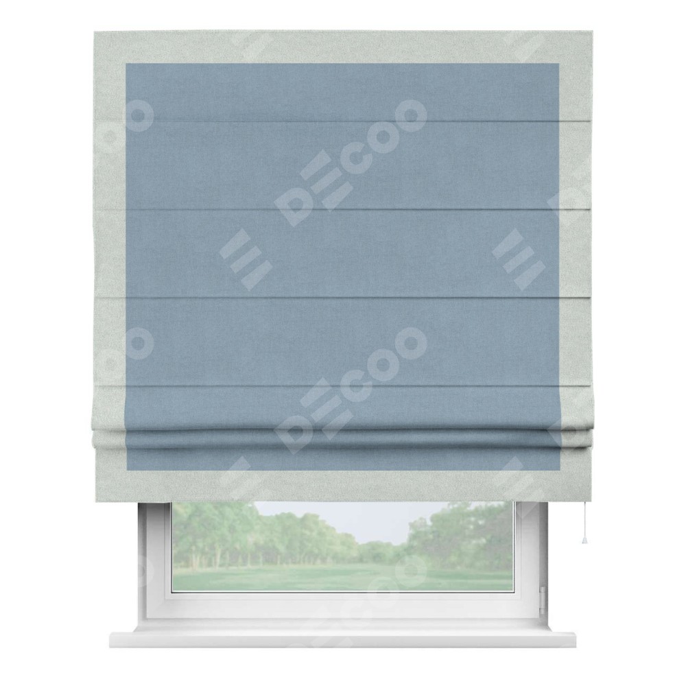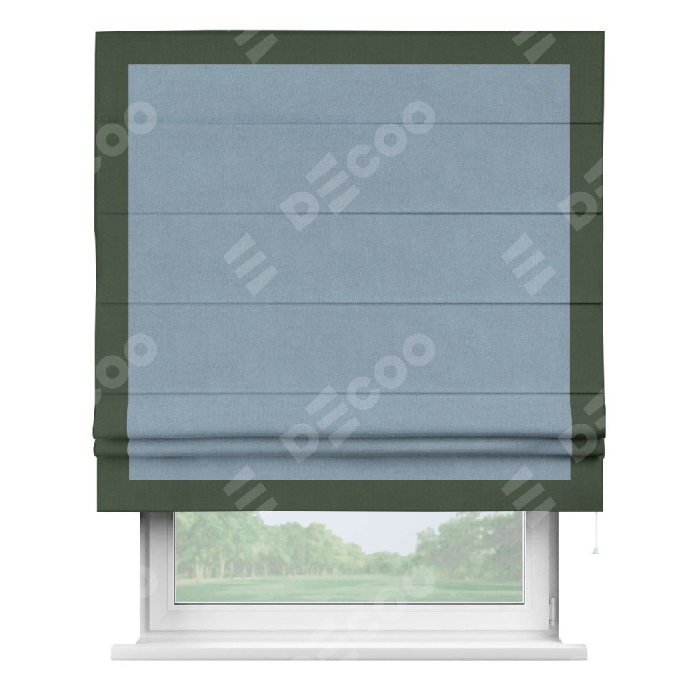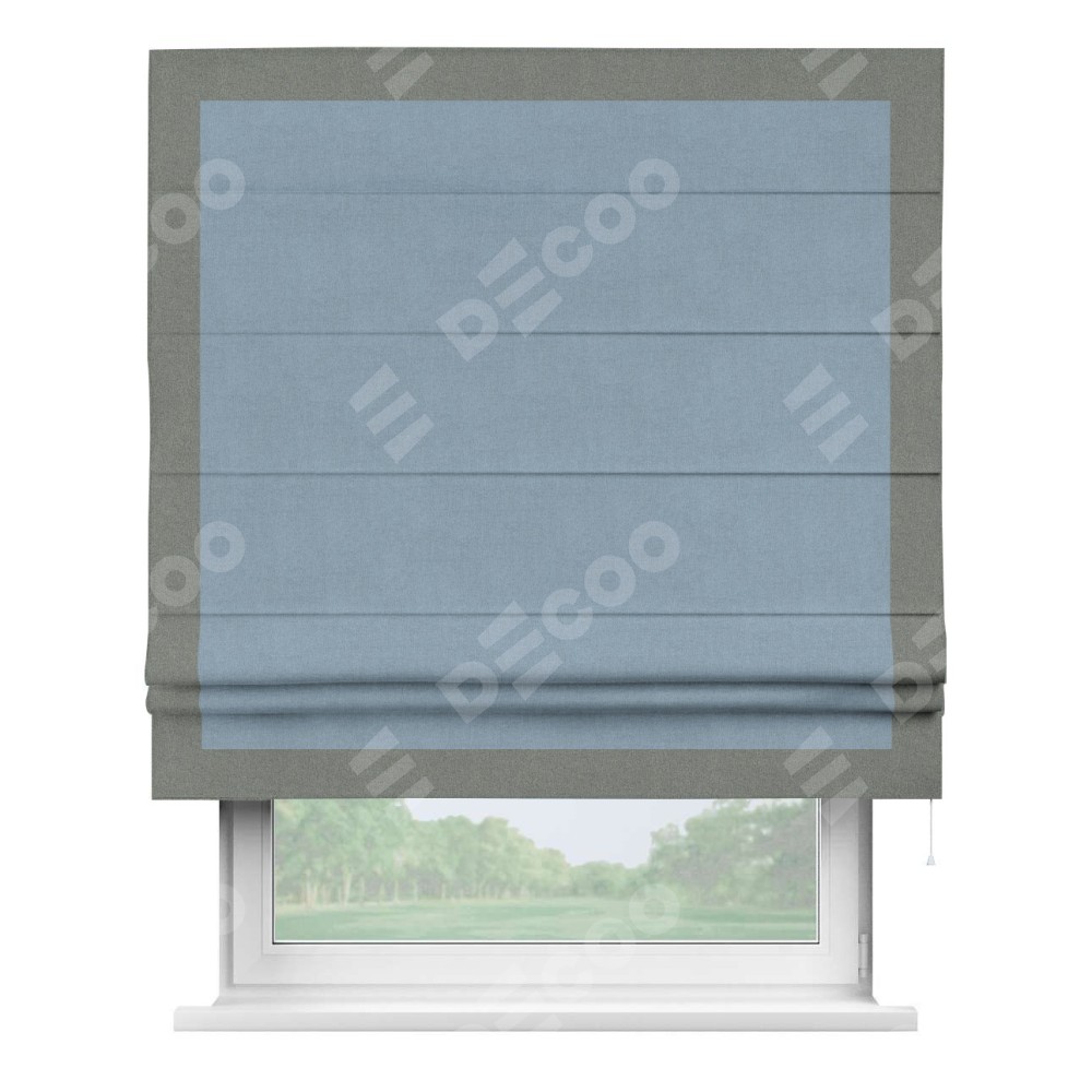 Римская штора «Кортин» с кантом Чесс, для проема, лён блэкаут голубой