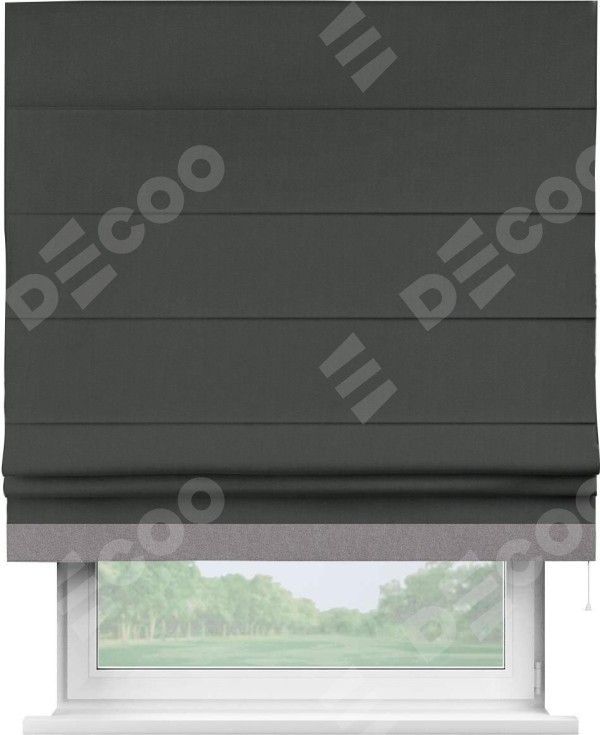 Римская штора «Кортин» с кантом Джестер, для проема, лён блэкаут графит