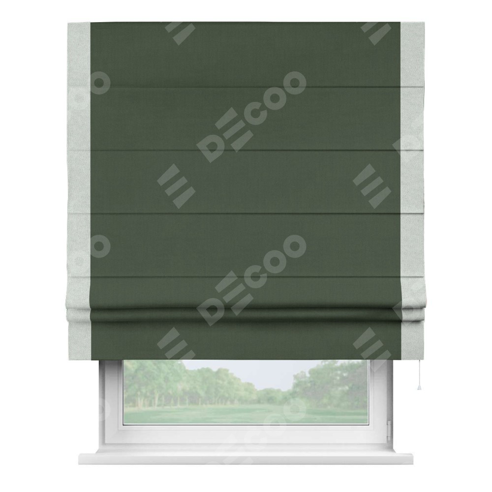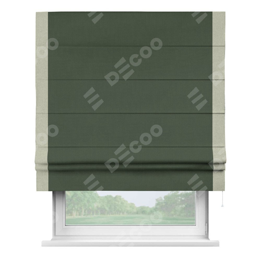 Римская штора «Кортин» с кантом Стрим Дуо, для проема, лён блэкаут зелёный