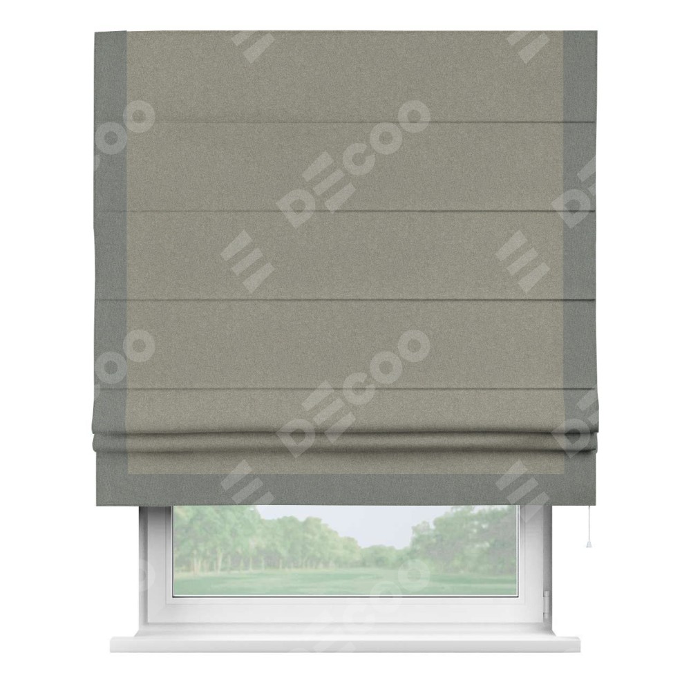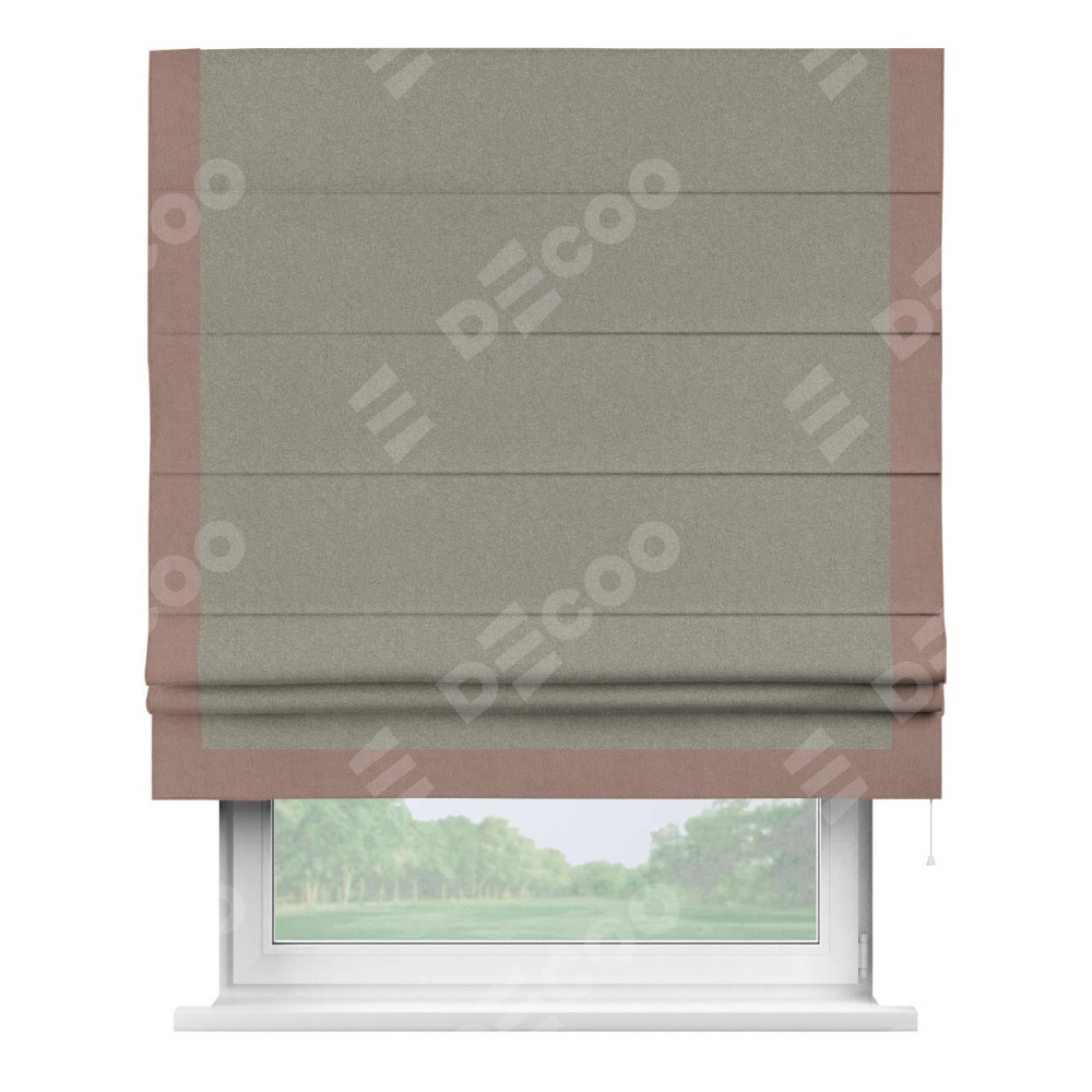 Римская штора производителя «Cortin», используется для проёма, пошита из ткани лён блэкаут светло-бежевый, артикул 69445. Отделка шторы кантом «Виктория», ткань для канта используется из льна разной расцветки на выбор. Имеет универсальный механизм и подходит для монтажа: на потолок, на стену и в нишу.