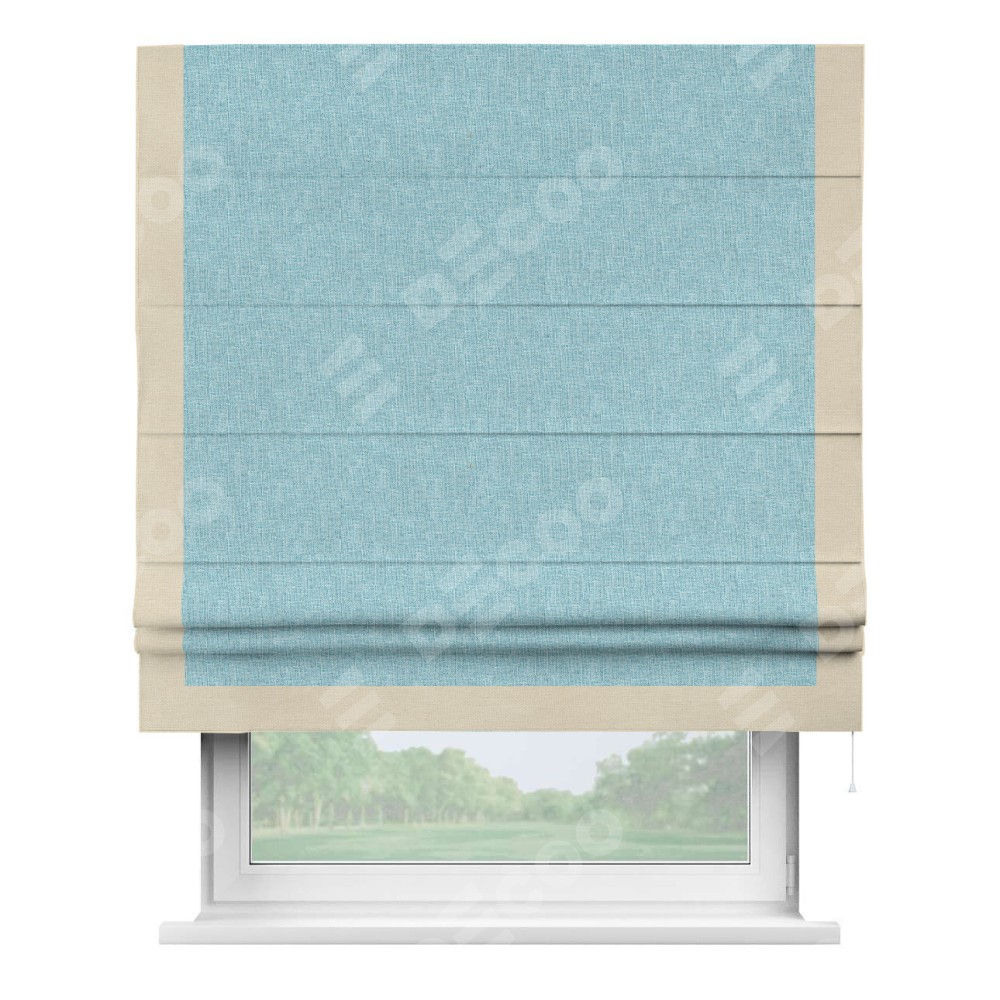 Римская штора «Кортин» с кантом Виктория, для проема, ткань лён кашемир голубой