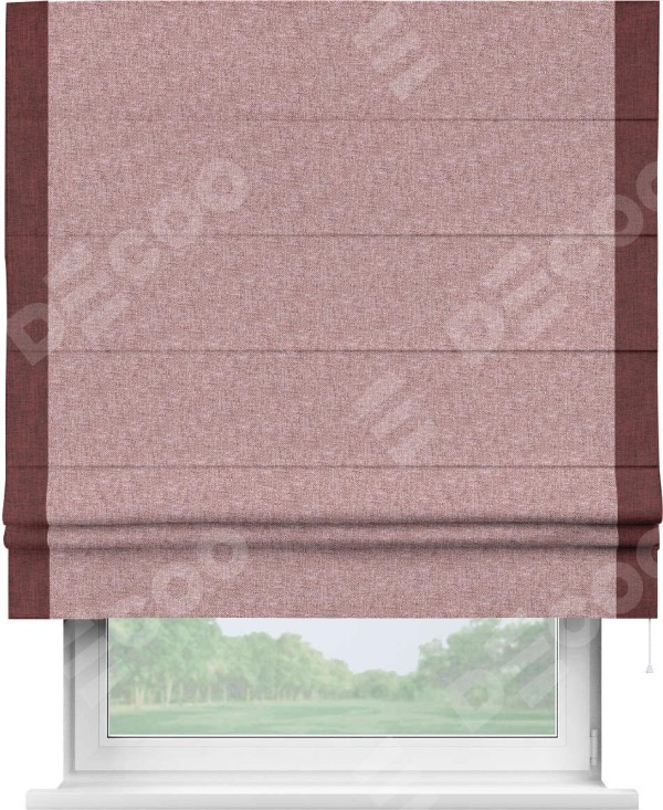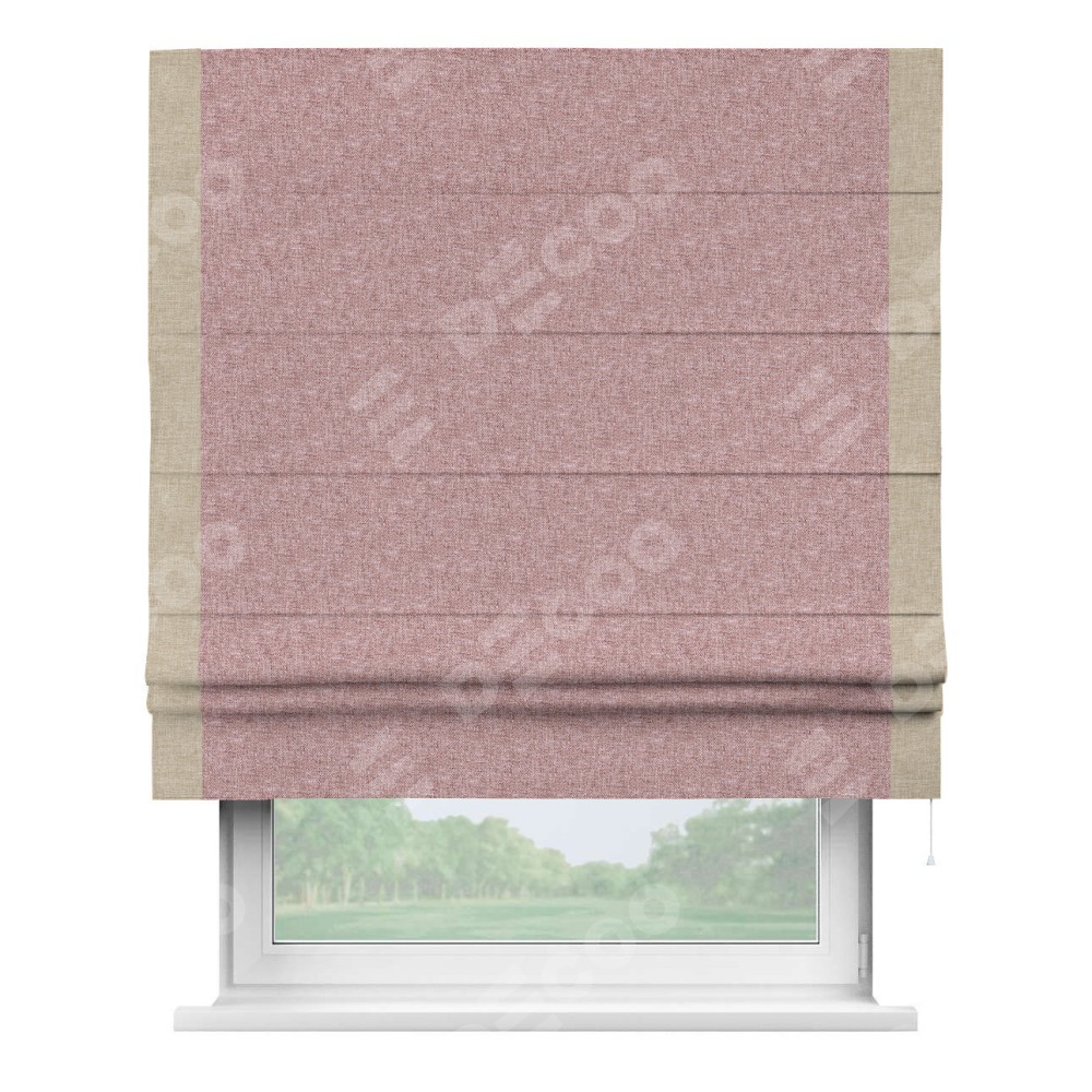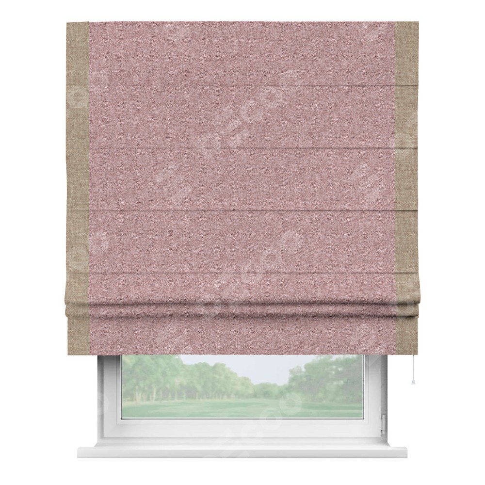 Римская штора «Кортин» с кантом Стрим Дуо, для проема, ткань лён кашемир розовая пудра