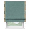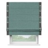 Римская штора производителя «Cortin», используется для проёма, пошита из ткани стиф димаут бирюзовый, артикул 18196. Отделка шторы кантом «Стрим Дуо» на кантах расположены люверсы с пояском, ткань для канта используется из стифа разной расцветки на выбор. Ткань для пояска обычно используется из основной ткани шторы, а так же можно сделать из любой расцветки по желанию. Имеет универсальный механизм и подходит для монтажа: на потолок, на стену и в нишу.