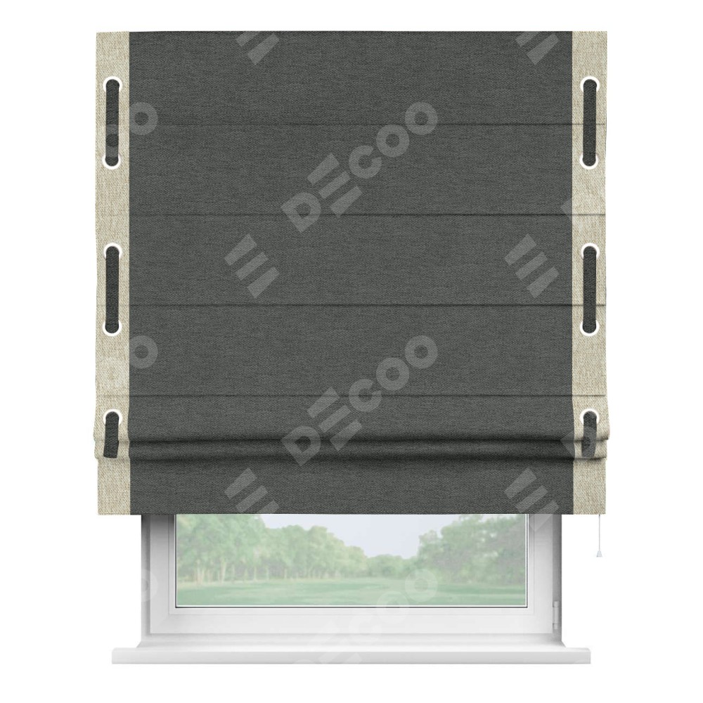 Римская штора «Кортин» с кантом Стрим Дуо (люверсы с пояском), для проема, ткань стиф димаут графит