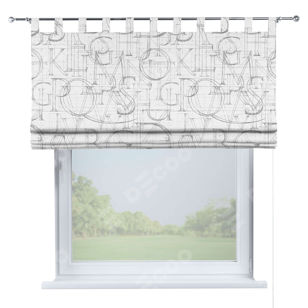 Римская штора производителя «Cortin», используется для проёма, пошита из ткани блэкаут с нанесением сублимационной печати «Античные буквы». Данная модель пошита на петлях, комплектуется на выбор круглым карнизом и подходит для монтажа на стену. Римская штора на петлях имеет простую систему регулировки высоты, отличительным преимуществом данной модели является простой способ монтажа. Достаточно повесить ее на трубу и штора готова!