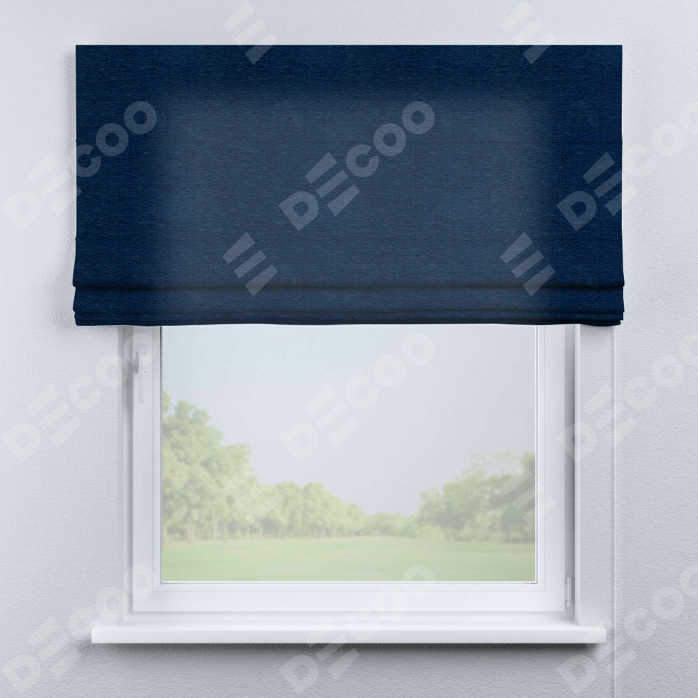 Римская штора производителя «Cortin», используется для проёма, пошита из ткани софт однотонный синий, артикул ткани 42937. Имеет универсальный механизм и подходит для монтажа: на потолок, на стену и в нишу.