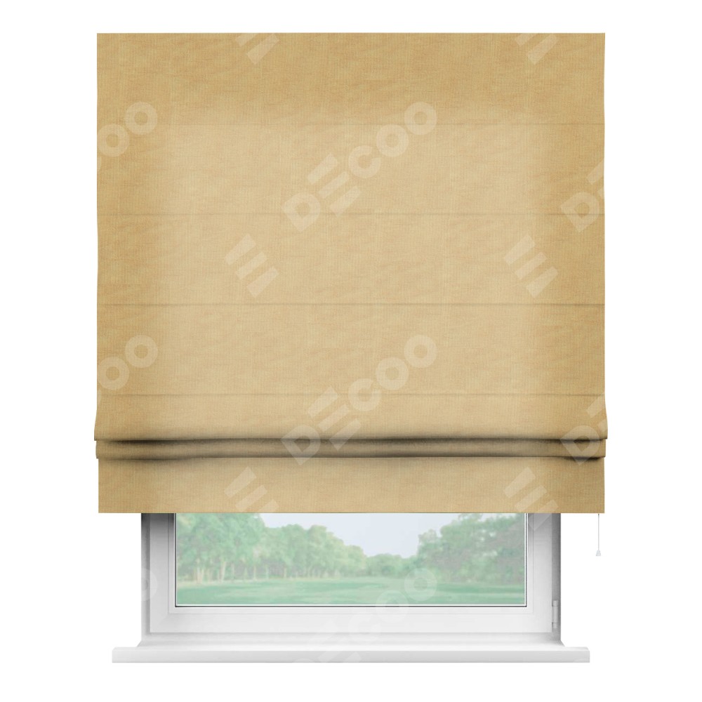 Римская штора производителя «Cortin», используется для проёма, пошита из ткани канвас абрикосовый, артикул ткани v-448. Имеет универсальный механизм и подходит для монтажа: на потолок, на стену и в нишу.