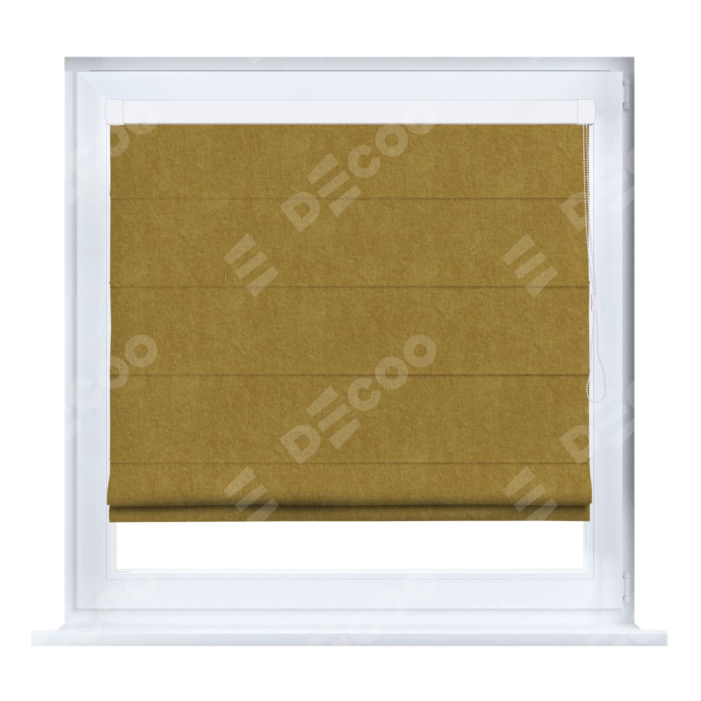 Римская штора производителя «Cortin», устанавливается на створку окна, пошита из ткани канвас горчица, артикул v-476. Штора шьётся по индивидуальным размерам, для данного типа римской шторы возможная ширина от 35 до 150 см., высота до 250 см.