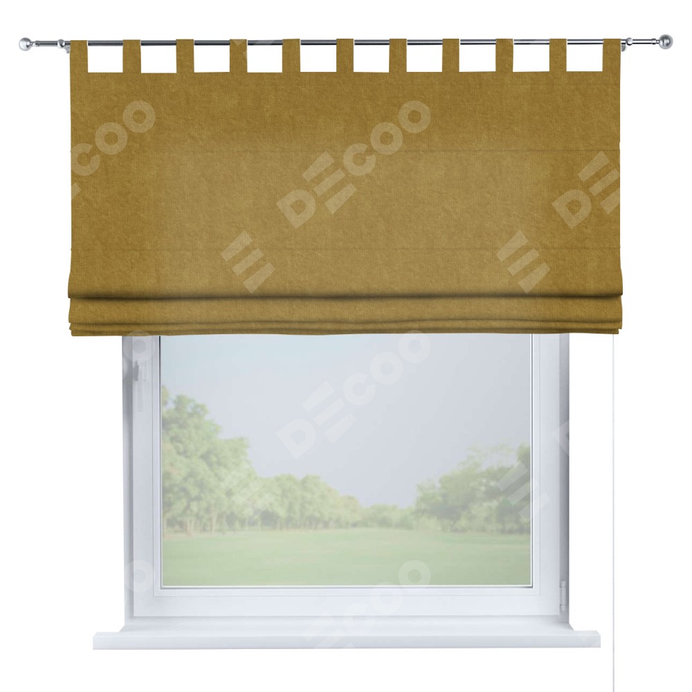 Римская штора производителя «Cortin», используется для проёма, пошита из ткани канвас горчица, артикул ткани v-476. Данная модель пошита на петлях, комплектуется на выбор круглым карнизом и подходит для монтажа на стену. Римская штора на петлях имеет простую систему регулировки высоты, отличительным преимуществом данной модели является простой способ монтажа. Достаточно повесить ее на трубу и штора готова!