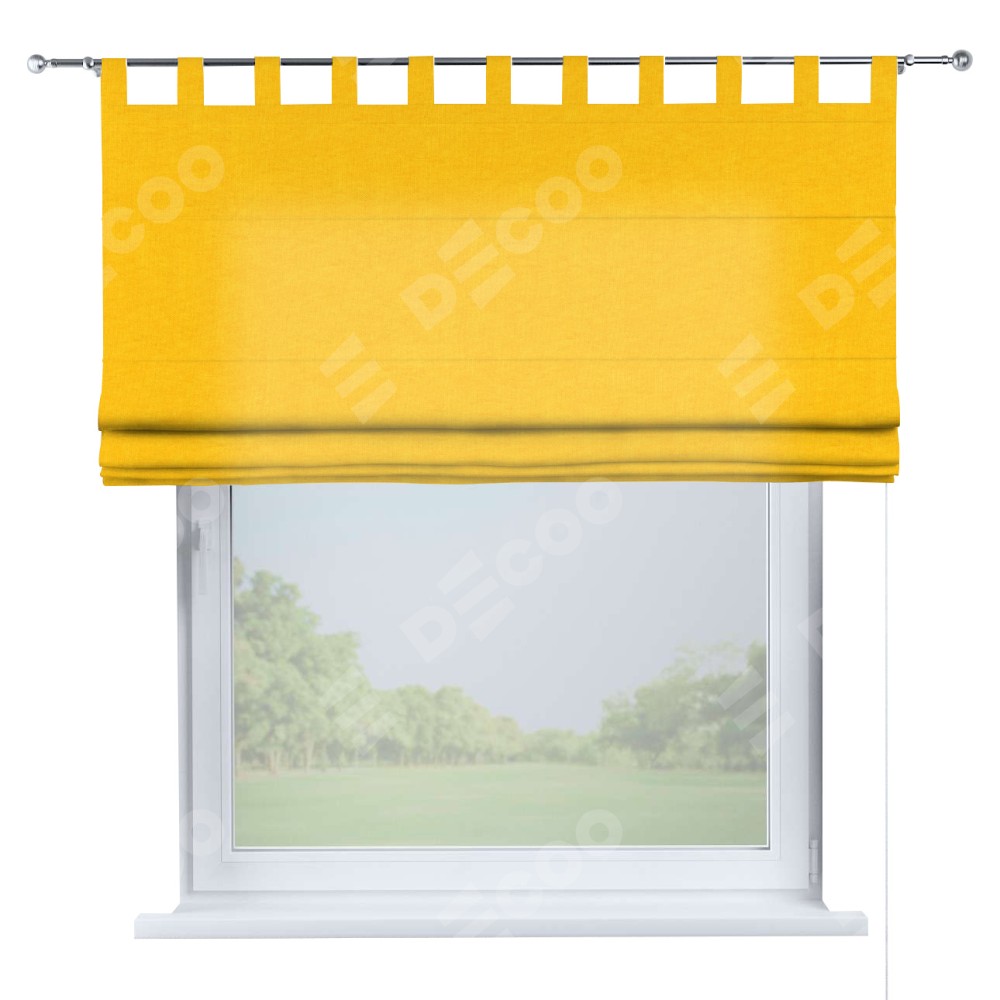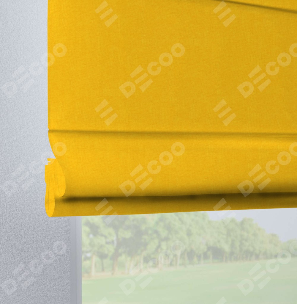 Римская штора производителя «Cortin», используется для проёма, пошита из ткани канвас желтый, артикул ткани v-344. Данная модель пошита на петлях, комплектуется на выбор круглым карнизом и подходит для монтажа на стену. Римская штора на петлях имеет простую систему регулировки высоты, отличительным преимуществом данной модели является простой способ монтажа. Достаточно повесить ее на трубу и штора готова!